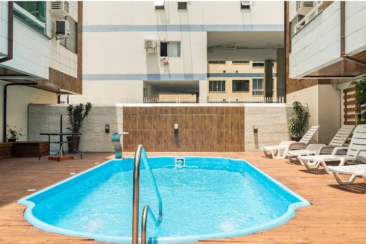 Íbúð með fullri uppbyggingu í hjarta Ingleses hverfisins. Inni í öruggu íbúðarhúsnæði með sundlaug, vatnsnuddi, grænu svæði, leiksvæði, nálægt matvörubúð, strönd, verslunum, mörkuðum, mörkuðum, börum, pizzeria, líkamsræktarstöðvum og veitingastöðum. Frábært fyrir frístundir, hvíld til að njóta með vinum og fjölskyldu og einnig fyrir heimaskrifstofu. Það rúmar allt að 5 manns (hjónarúm, tvö einbreið rúm og eitt aukarúm).