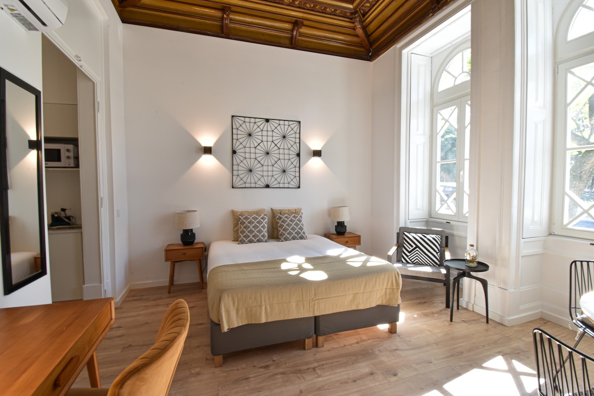 Spectacular stúdíó með útsýni yfir Mermaid Garden. Sögufræg bygging með framúrskarandi hönnun og þægindum. Eldhús með öllum nauðsynlegum búnaði fyrir skammtíma- eða langtímadvöl. 5 mínútur í háskólann í Coimbra.