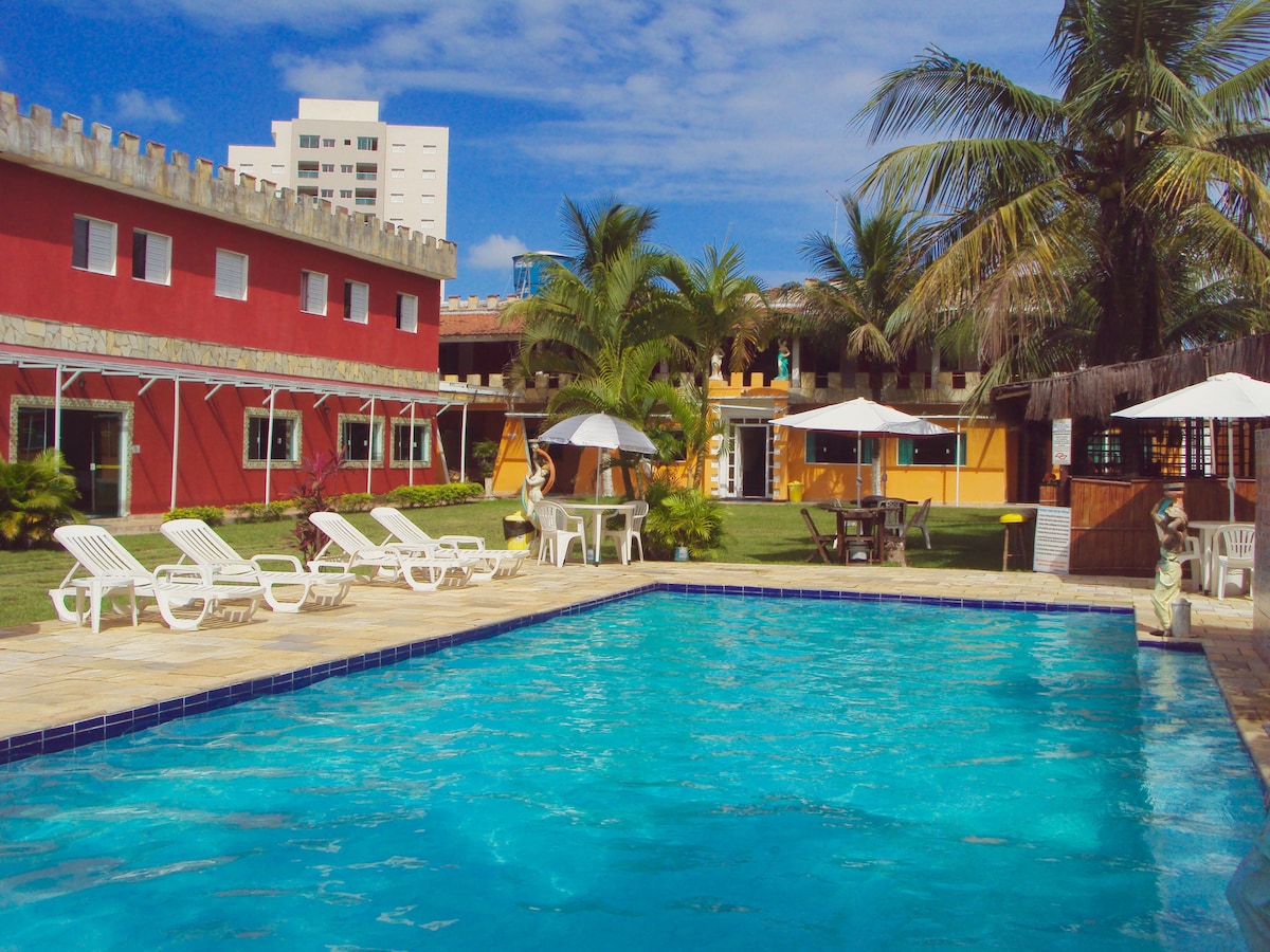 Einkaríbúð í íbúðarbyggingu með miklum afþreyingu: loftræstikerfi í hverju herbergi - stofa með snjallsjónvarpi og sófa, - Þráðlaust net - fullbúið eldhús, - 2 bílastæði - Einkagrill Verð 150,00 R$ á mann Tilvalið fyrir allt að 8 gesti Ókeypis aðgangur að sundlauginni, vatninu og stórum sameiginlegum garði Við erum á rólegum stað nálægt ströndinni og miðbænum Neyðartilvik - 5 mínútur frá miðbæ Mongaguá - 6 km frá Poço das Antas - 15 km fiskveiðipallur