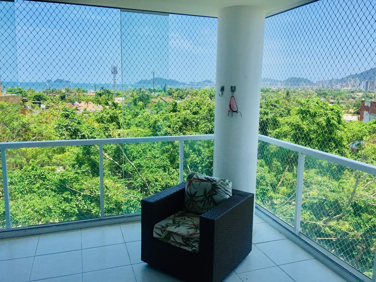 Skemmtun með allri fjölskyldunni á þessum ótrúlega stað. Það er með queen-rúm, svefnsófa, fullbúið eldhús (hnífapör, rafmagnseldavél, diska) Herbergi með tvsmart42 ', internet 500 mb tilvalið fyrir heimaskrifstofu, borð með hægindastól sem hægt er að fara út á svalir. Full Lazer: upphitaðar sundlaugar, dásamleg, loftkæld endalaus sundlaug, leikjaherbergi og leikbókasafn. Útsýni yfir ströndina frá hliðinni. Líkamsrækt og sána eru gestum einnig að kostnaðarlausu. Við tökum á móti 1 litlum hundi 150,00 /Við tökum ekki á móti köttum.