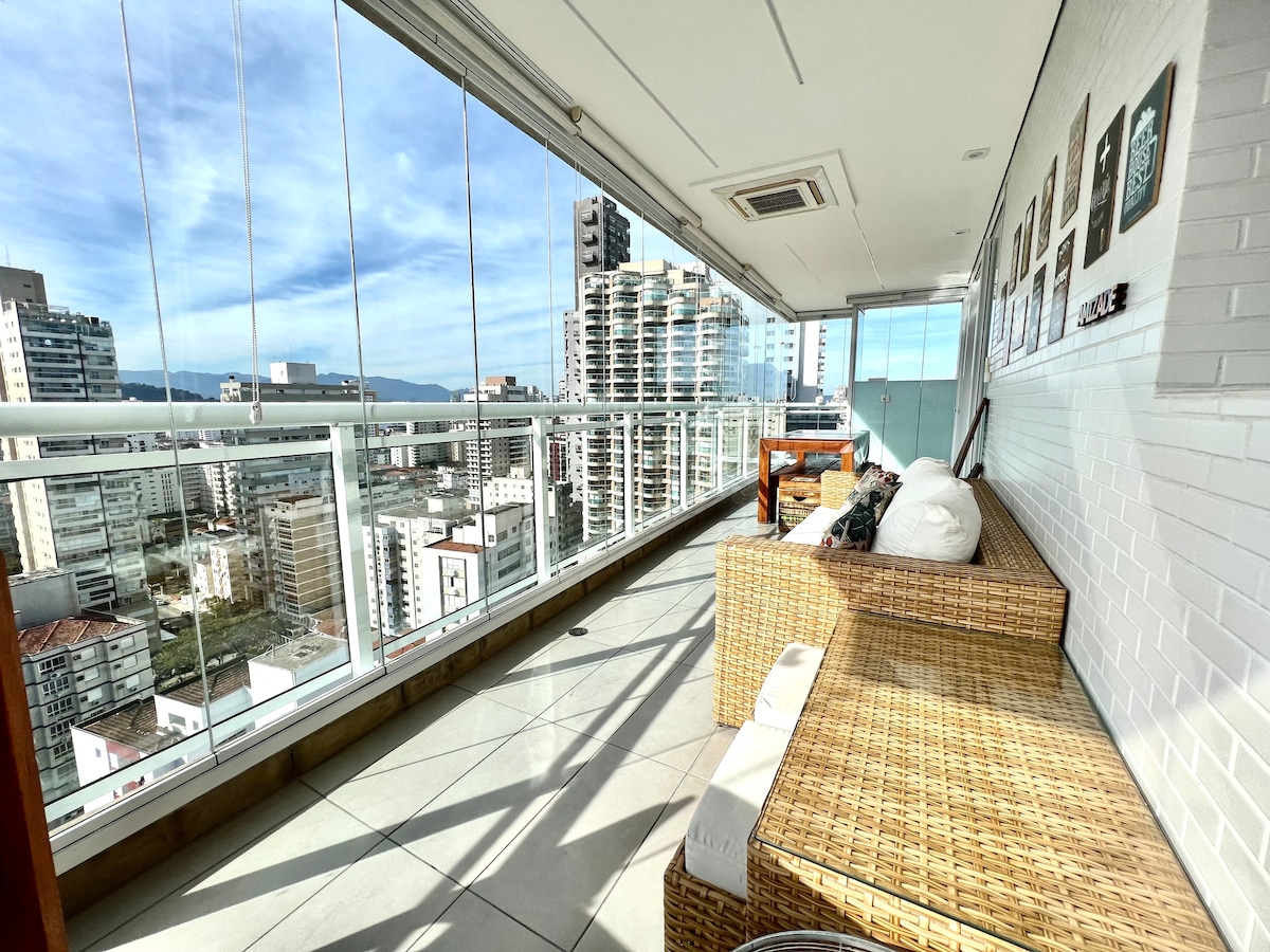 Íbúð 2112 er fullkomin fyrir þá sem elska að læra eða vinna í sérútbúnu horni með útsýni yfir hafið og borgina Santos. Með 54 m² og glerjuðum svölum rúmar íbúðin allt að 4 manns. Með fallegu skrauti sem þú hefur hugsað um bestu upplifun þína í besta íbúðarhúsinu í Santos. Komdu og vertu hjá okkur og láttu þér líða eins og heima hjá þér!