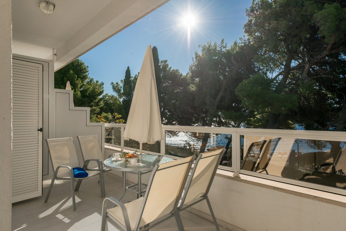 Apartment's house is located next to the beach on a beautiful promenade towards to Zlatni rat. The apartment is located on the first floor,south side of the villa with direct view of the sea. It consists of a bedroom with double bed, living room with two single beds, a bathroom, a fully equipped kitchen and large terrace. It is designed to accommodate 2-4 people and is ideal for families with children. *The nearest free and secure parking is 400 m from the apartment. *Please read other notes