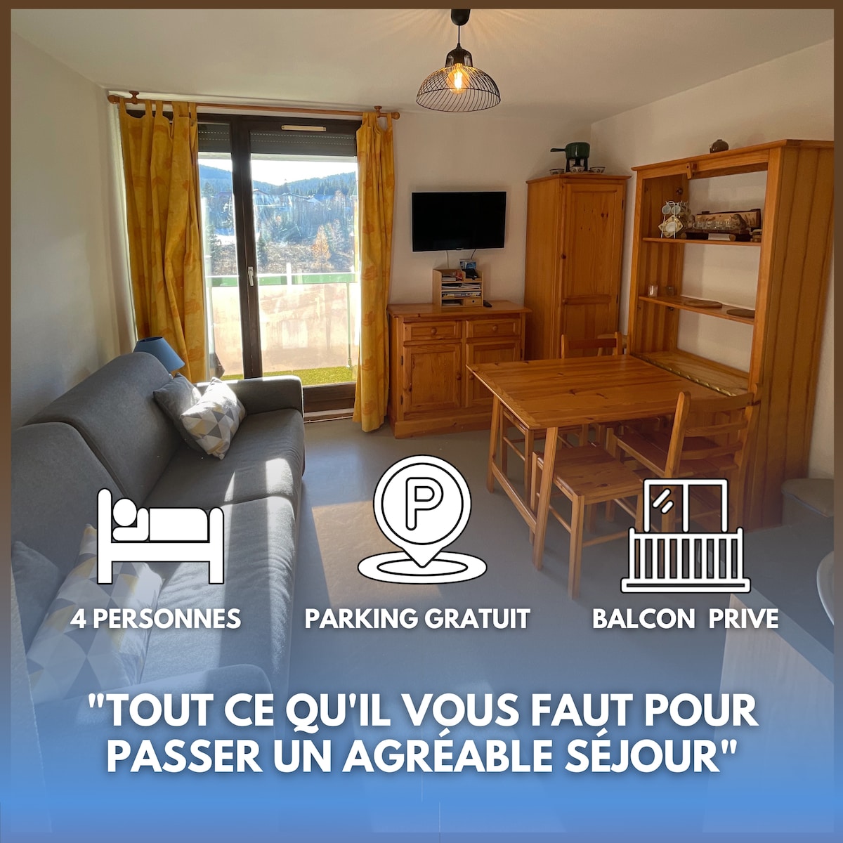 ⛰️ Ce studio montagnard est idéal pour un couple seul ou avec enfant(s). Logement classé Meublé de tourisme 2 ⭐️ . Il est situé sur la commune de Prémanon, pouvant accueillir jusqu’à 4 personnes. (Niché à proximité des pistes de ski, des restaurants locaux, des lacs, de la patinoire et du musée du monde polaire. Cette résidence offre un équilibre idéal entre confort et commodité pour rendre votre séjour inoubliable.) 🌲Un séjour paisible au cœur du Parc Naturel du Haut Jura.