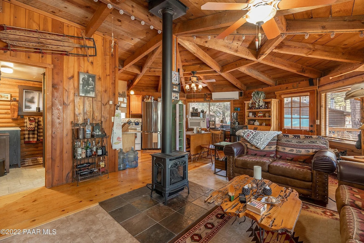 Njóttu sérstaks frí í fulluppgerðu kofanum okkar, „The Apple Knoll“. Kofinn okkar er á 2 hektara skóglendi, í aðeins 5 mínútna akstursfjarlægð frá Courthouse Square og í 1,6 km fjarlægð frá Goldwater Lake. Það er 400 fermetrar af öllu sveitalegu og heillandi: steinarinn, bjálki, hvolfþak og meira að segja svefnloft, inni í Prescott 's National Forest. Ef þú ert að leita að heillandi, rómantísku fríi eða helgi til að taka úr sambandi og slappa af er þetta rétti staðurinn fyrir þú! TPT- 2153577