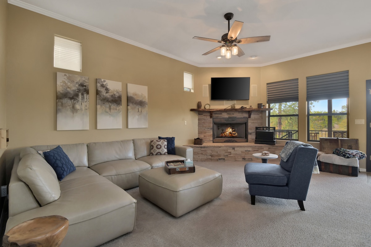 Stökktu að lúxus Oak Stone Lodge, einkaskógarkofa í nokkurra mínútna fjarlægð frá miðbæ Prescott. Þetta glæsilega afdrep býður upp á nútímalegar innréttingar, margar byggingar, leikjahús, kvikmyndahús og nægt pláss fyrir samkomur. Njóttu heita pottsins og friðsæls umhverfis Prescott-þjóðskóginn. Fullkomið fyrir fjölskyldufrí eða helgarferðir. Þetta er tækifæri þitt til að eiga paradísarsneið í hjarta Prescott, Arizona.