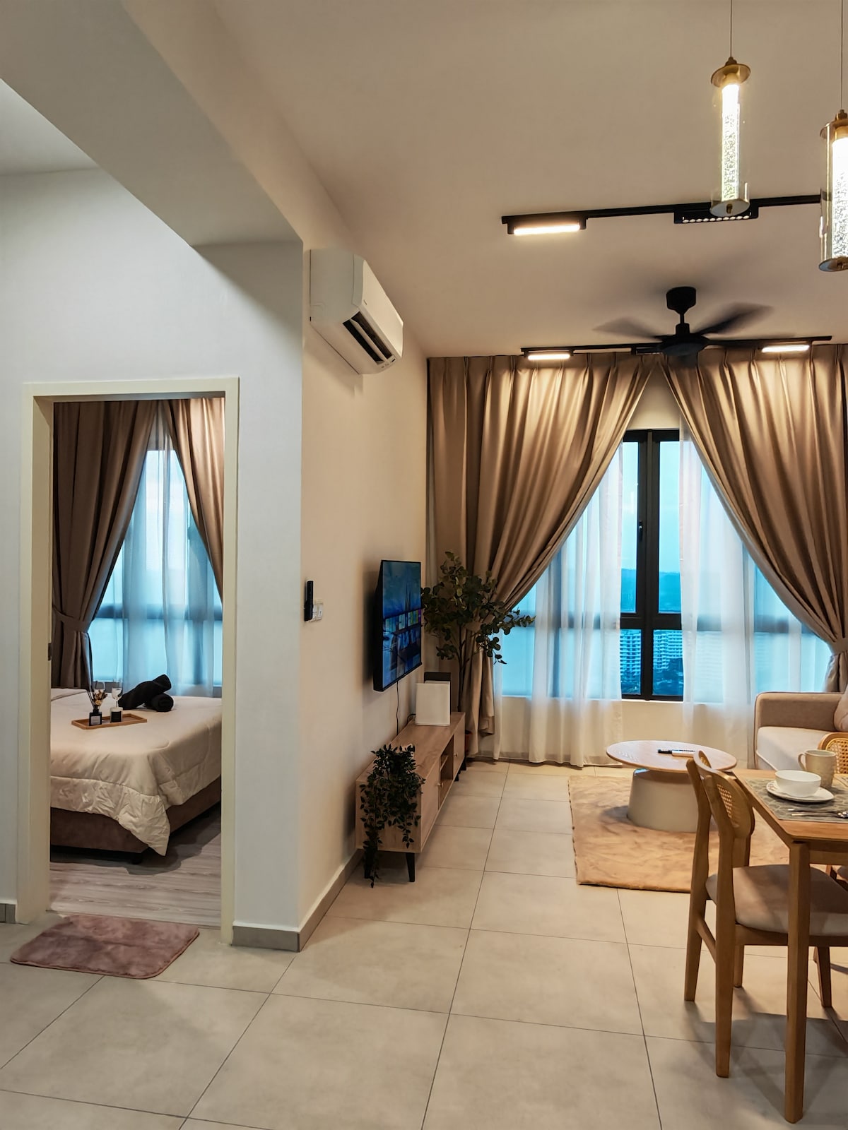 Spacious and intimate. As this is my 5th unit, we took a step up and lease a 1 bedroom suite with a cozy living area and dining area unit. With a majestic view of Cyberjaya from your window, nothing screams fantastic than this. Perfect for longer stay either for leisure or business. We are connected to Tamarind Square via a shaded walkaway with all the necessity that you need during your stay.
