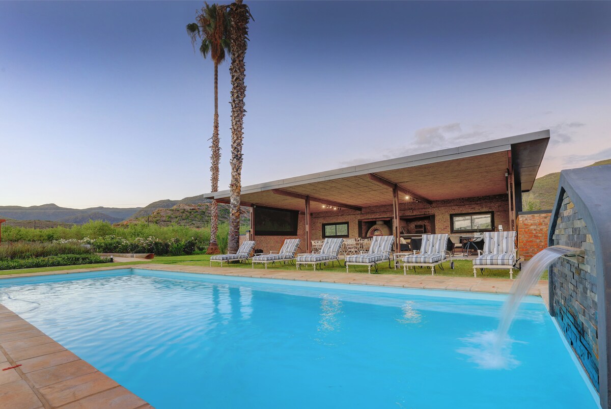 Authentic South African Karoo experience! The RUSTIC STRAWBALE cottage has a large stoep, outdoor shower & plunge pool / hot tub to take in the views over the orchards to the Swartberg mountains in the background, promising a relaxing and memorable Klein Karoo experience. Simple, stylish, and earthy, this cottage is a truly UNIQUE reprieve from city life or a stopover for weary travelers! Please read below for important info before booking!!!