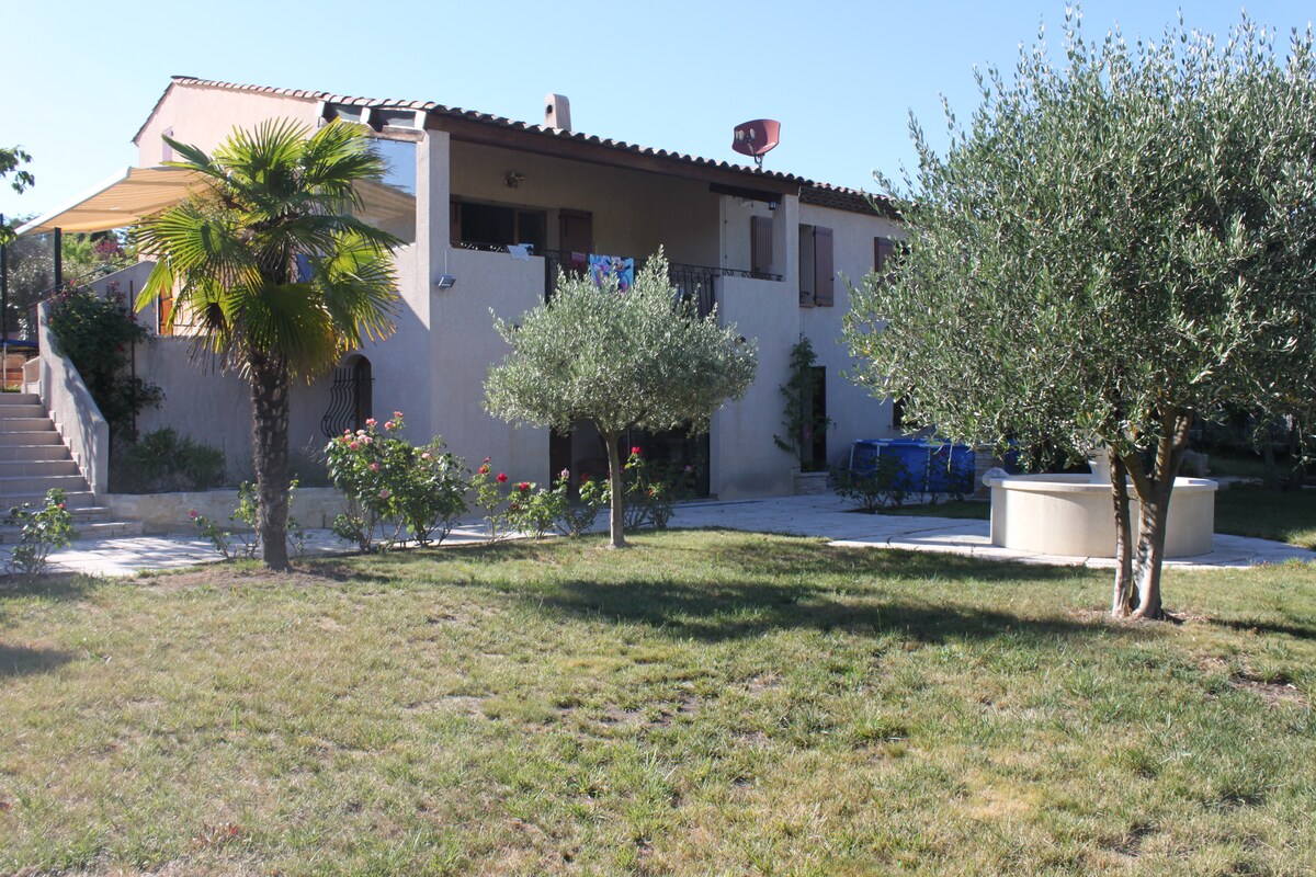 🌟 "A l'ombre du tilleul" ... un joli mas moderne et typiquement provençal, qui offre tout le confort ! Un lieu agréable pour se détendre. L'extérieur comprend une cour intérieure avec espace pétanque, une belle terrasse ombragée avec un magnifique tilleul, un barbecue, un joli jardin arboré, une agréable piscine, une table de ping pong ainsi qu’un bar pour vos tranquilles soirées estivales. La maison est également équipée d'un baby foot, de livres (adultes et enfants) et de jeux de société.