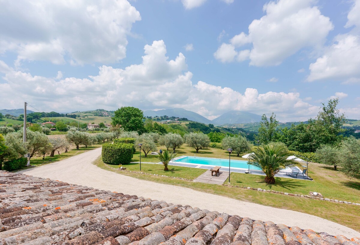 Stórkostlegt útsýni yfir fjöllin og hæðirnar í Marche-svæðinu upp að Adríahafinu. Þægileg og rúmgóð þriggja svefnherbergja íbúð, tilvalin miðstöð til að skoða Monti Sibillini þjóðgarðinn, fara í gönguferðir eða hjóla, upplifa sveitastemninguna á Marche-svæðinu, kynnast mat og víni og margt fleira. Íbúðin er með stóra útiverönd með útsýni yfir Monte Sibilla.