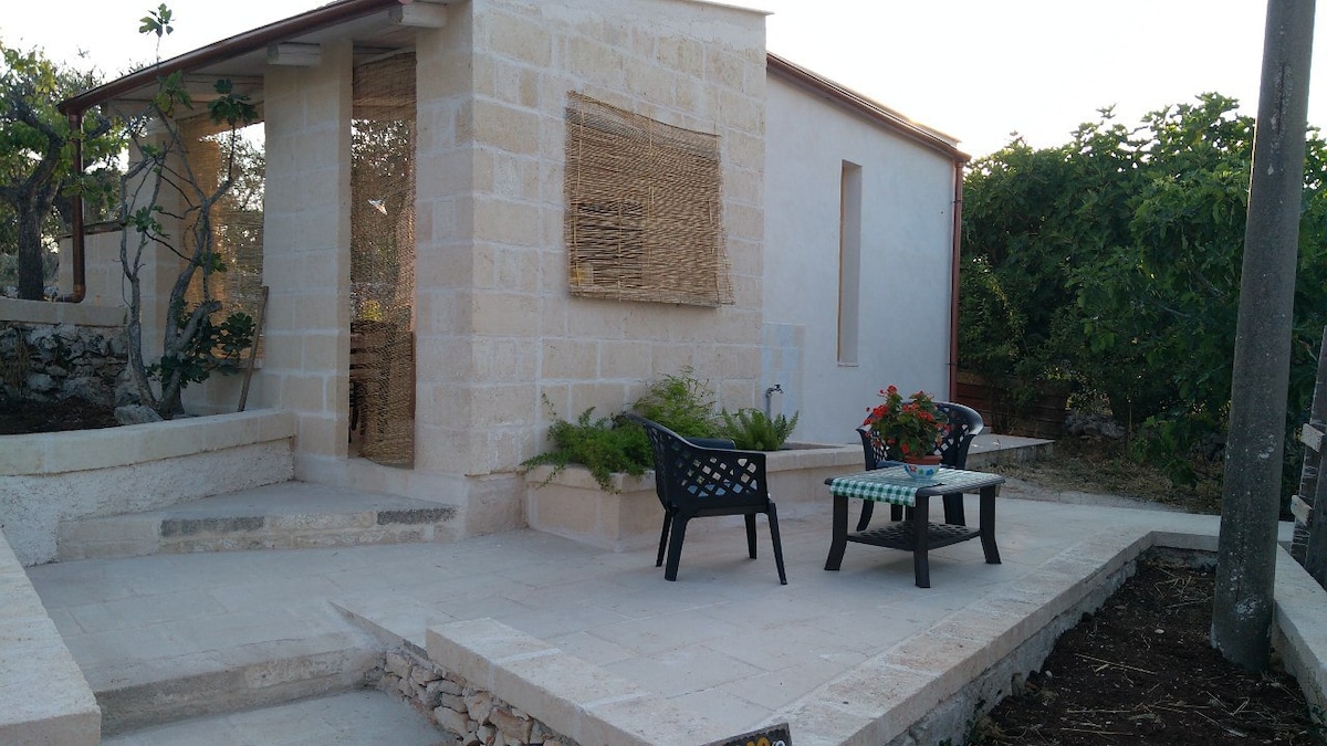 Nella campagna pugliese, una casa indipendente tra ulivi secolari ideale per una coppia, composta da: soggiorno con angolo cottura e camino, una camera matrimoniale e bagno. Portico con barbecue e lavandino. Doccia esterna e panca in muratura all'ombra degli ulivi nell'ampio giardino mediterraneo. La casa gode di totale privacy. Luogo ideale per rilassarsi, godere del contatto con la natura, visitare luoghi d'arte, esplorare le meravigliose coste pugliesi e gustare la famosa cucina pugliese.