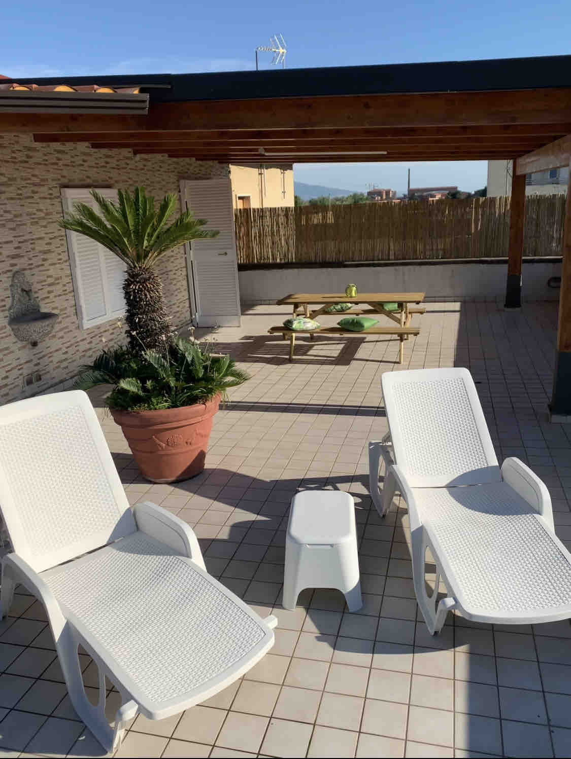 (all esterno si può fumare) Nuova costruzione mansarda completamente arredato con tutti i confort ,wifi eccellente segnale presa ethernet con postazione lap top. Bagno in camera + bagno principale ,cabina armadio, cucina accessoriata , 10 minuti dalle spiagge.(litorale domitio} 30 minuti Pompei, Ercolano.20min reggia di Caserta,15 minuto campi flegrei 10 minuti Napoli centro. 500metri svincolo super strada 200 mt parco auchan. terrazzino esterno. free parking privato