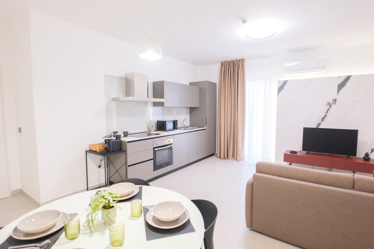Welcome to a modern and elegant apartment, designed to offer comfort, functionality, and privacy. The spaces are bright, carefully detailed, and furnished in a contemporary style, ideal for families, business travelers, and couples. The central location allows easy access to services and main transport connections. Guests also have access to private parking within the property, ensuring a comfortable and worry-free stay.