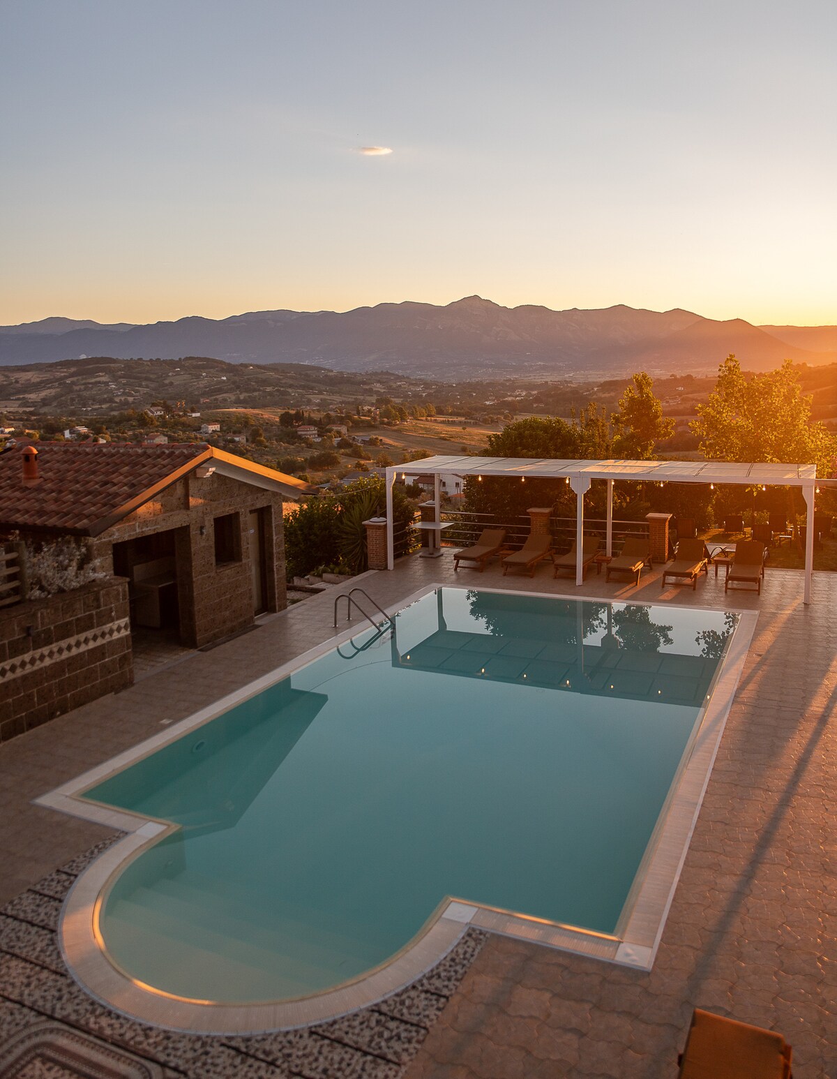 Villa Santoro ai Tre Ulivi is an unique retreat nestled in the hills of Caiazzo (CE), offering panoramic views over the Telesina Valley and the Matese and Taburno mountains. The villa features a 12×6 panoramic pool, solarium, BBQ area and spacious outdoor spaces. Spread over 3 levels with independent, air-conditioned apartments, it offers total privacy and is ideal for families, groups, events and team building. Strategically located to visit Caserta, Naples, Pompeii and the Amalfi Coast.