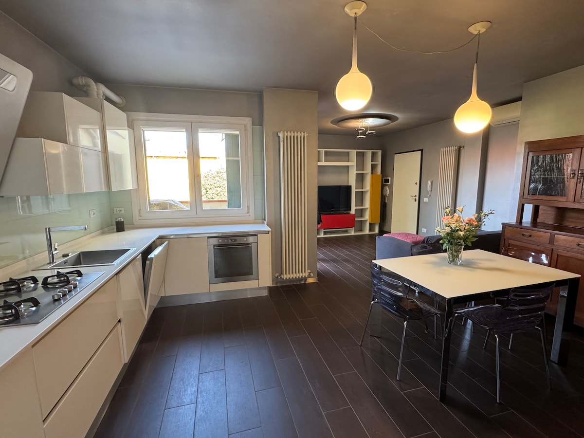 GLÆSILEG ÞRÍR HERBERGI ÍBÚÐ Í HJARTA FERRARA Kynnstu endurreisnarstemningu Ferrara í þessari notalegu og fágaðu íbúð. Hún er í nokkurra skrefa fjarlægð frá Este-kastala og helstu áhugaverðum stöðum og rúmar allt að 5 manns með 2 svefnherbergjum, svefnsófa í eldhúsinu, ofurhröðu þráðlausu neti, loftkælingu, snjallsjónvarpi og vel búnu eldhúsi. Staðsett í ZTL með ókeypis bílastæði í nágrenninu. Þetta er tilvalin miðstöð til að skoða borgina í algjörum þægindum. Við notum Vikey til að opna dyrnar.