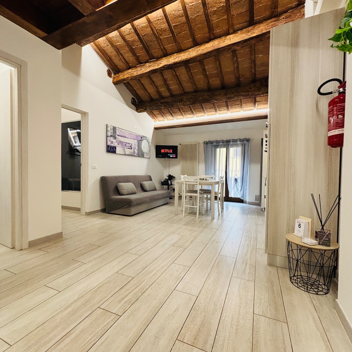 Halló öll, þessi tegund gistingu er staðsett í 4 íbúðum í hefðbundnu húsi í sögulega miðborginni, algjörlega sjálfstæð með svefnherbergi með tvíbreiðu rúmi og millihæð með öðru tvíbreiðu rúmi. Fyrir utan herbergið er eldhúskrókur til EINKANOTA. Með þessari gistingu í miðbænum verður fjölskyldan þín nálægt öllu, söfnum, leikhúsi, Villa Serena sjúkrahúsinu og 300 metra frá aðaltorgi Forlì, þar sem minibussar fara til stöðvarinnar og sjúkrahússins.