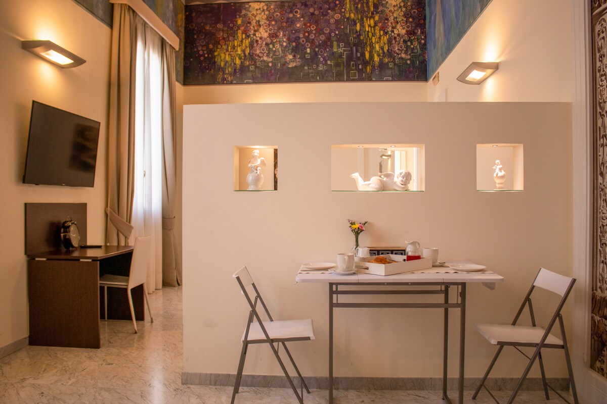 Splendida suite all'interno di un antico palazzo del '900 nel cuore della Lecce Barocca a pochi passi da tutti i maggiori luoghi di interesse, la posizione strategica consente di visitare la capitale salentina a piedi. La suite interamente ristrutturata è la soluzione ideale per un soggiorno all'insegna del comfort.