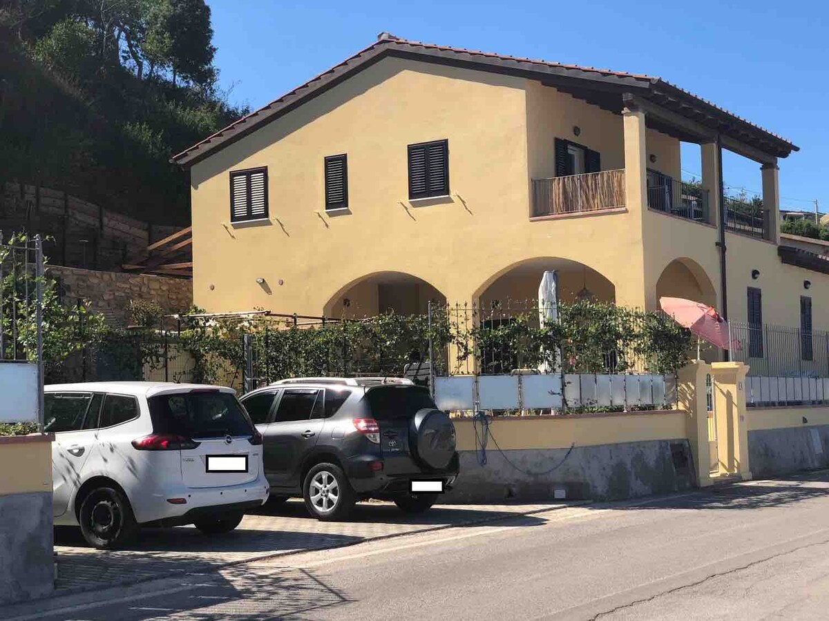 Casa namaste er lítið steinhús með mjög vel hirtum innréttingum í 1 km fjarlægð frá miðaldaþorpinu Montescudaio Húsið er umkringt skógi og aldagömlum eikum í 150 metra fjarlægð. Áin Cecina rennur í 5000 fermetra garðinum. Það er náttúruleg lind með stóru steinbaðkeri til að kæla sig niður og heitri sturtu utandyra umkringd gróðri. Við erum með Vodafone adsl línu með niðurhali 33 og upphleðslu 1.4. Snjallsjónvarp og loftræsting eru einnig í boði frá og með þessu vori