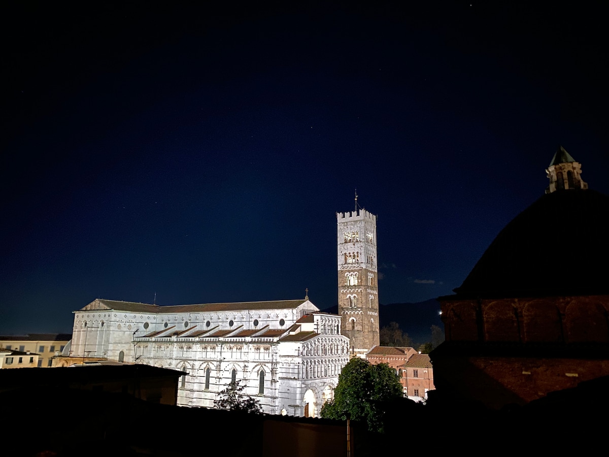 Þetta er upprunaleg og ósvikin íbúð í Toskana frá 15. öld. Staðsett á 3. og síðustu hæð (í gegnum stiga) í virtu og fornu „Casa Torre“. Í sögulega miðbæ Lucca, aðeins 3 mín ganga að Piazza Napoleone, verslunum, veitingastöðum... Þú munt heillast af ótrúlegu útsýni yfir aðaldómkirkju Lucca (Duomo di San Martino), afskekkt fjöll en einnig rúmgóð og björt herbergi og þetta eru upprunalegar gólfflísar!