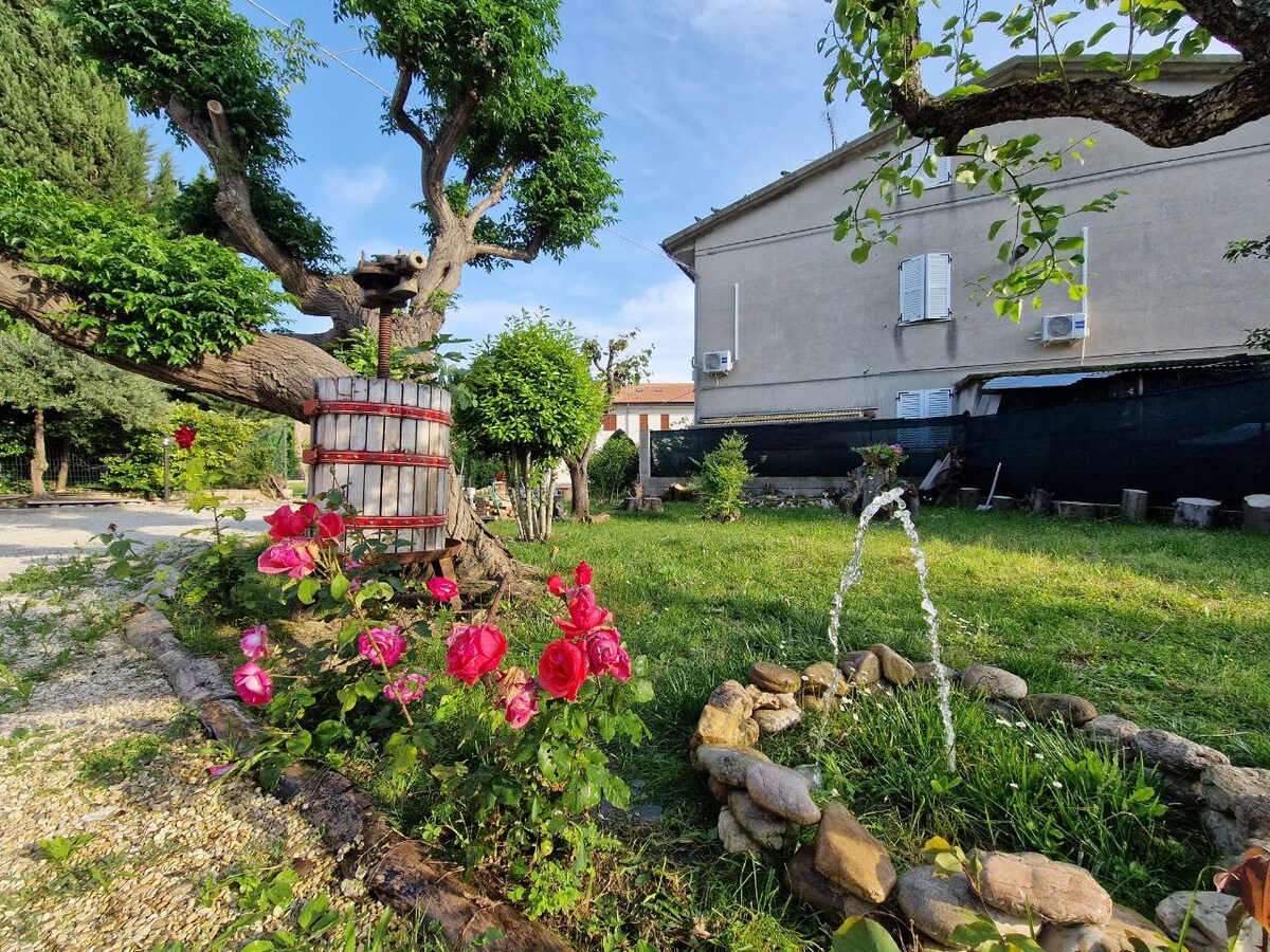 Okkur væri ánægja að taka á móti þér í íbúð okkar sem er um 70 fermetrar að stærð, fullkomlega sjálfstæð, 100% rafknúin og sjálfstæð við hliðina á heimili okkar. Eignin, með stórum garði, er staðsett í 30 mínútna fjarlægð frá fjöllunum og í 15 mínútna fjarlægð frá sjónum, sökkt í fermano-hæðirnar. Íbúðin samanstendur af: 1 stór stofa með svefnsófa 1 eldhús með borði og tækjum 1 baðherbergi Tvö svefnherbergi, annað með hjónarúmi og hitt með kojum Útiborð