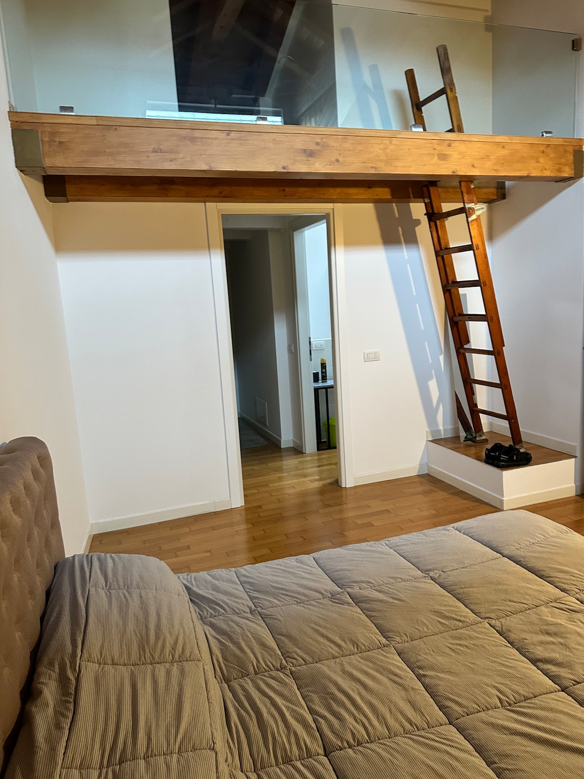 Prestigious penthouse apartment in Corso Garibaldi, Padua. The apartment comprises: - Entrance hall in historic building - Fully equipped kitchen - Open-plan living room with dining table, sofa and television - 1 bathroom with bathtub - 1 bathroom with whirlpool tub - 1 double bedroom with king-size bed + one single bed - 1 double bedroom with queen-size bed The flat is very convenient for public transport and is located 2 minutes by tram from the station.
