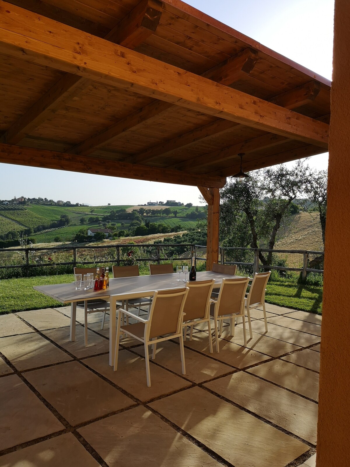 Heillandi sjálfstætt orlofsheimili staðsett í hæðunum í Marche, tilvalinn áfangastaður fyrir fjölskyldur eða vinahópa í fylgd loðinna vina sinna. 3000 m garður með útsýni yfir hæðirnar sem veitir þér stórkostlegt útsýni til allra átta. Eignin er fullfrágengin með afslöppunarhorni með heitum potti, setustofum og fallhlífum. Þar er garðskáli með líkamsræktarbúnaði, grilltæki, blaki eða badminton-neti, pílukast, leikvöllur með rólu og tvö fjallahjól