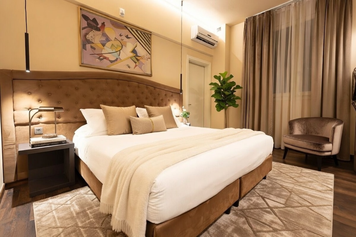 Le nostre camere offrono un soggiorno elegante e riservato, ideale per chi cerca comfort, tranquillità e stile. Gli ambienti moderni e luminosi sono curati nei minimi dettagli e dotati di letti confortevoli, aria condizionata, Wi-Fi gratuito, Smart TV, minibar e bagno privato. La posizione tranquilla garantisce relax e privacy, restando comoda per raggiungere il centro e i principali servizi. La soluzione perfetta per viaggi di piacere o di lavoro, all’insegna del benessere e della qualità.