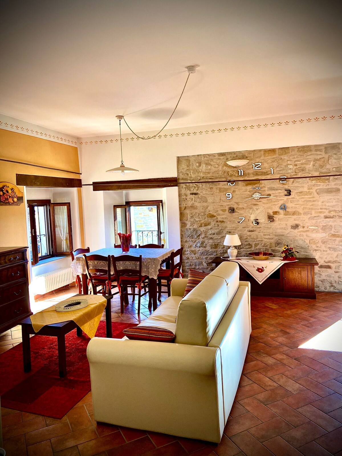 200 metrum frá gamla bænum í Montecchio þar sem kastalinn frá tímum Matildica stendur. Um 17 km á milli Parma og Reggio. Raðað á 2 hæðum, PT stofa með eldhúskrók, á 1. hæð 2 svefnherbergi með 160 cm rúmi og 120 cm rúmi; baðherbergi með sturtu og öllum baðherbergisbúnaði. Aðgangur í gegnum sjálfvirka hliðið sem leiðir að innri húsagarði. BÍLA-/SENDIBÍLAPARKERING (að því tilskyldu að það séu engar olíulekar) FYRIR FRAMAN ÍBÚÐARDYR. Hleðslustöð fyrir bíl á veröndinni.