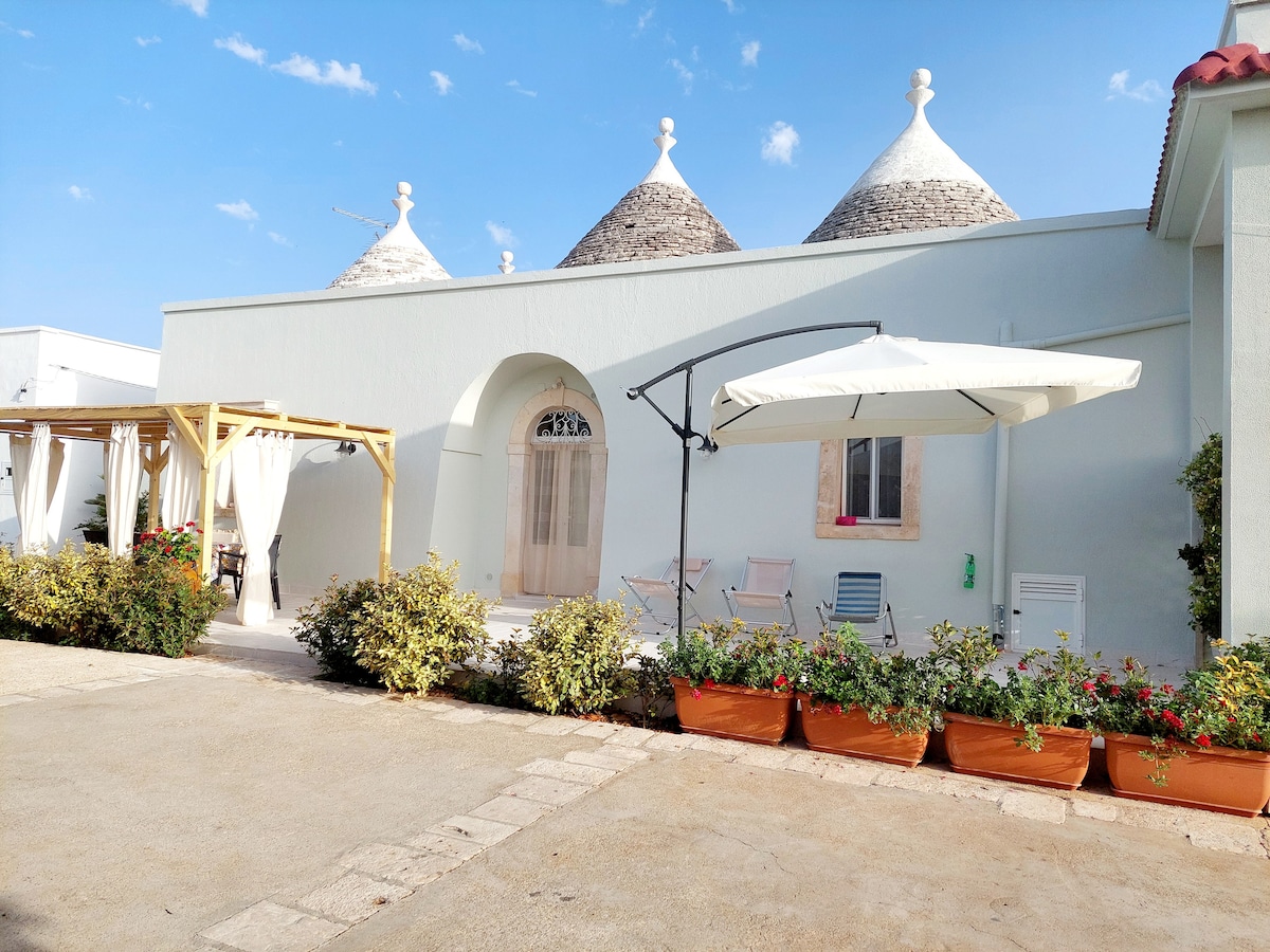 Un luogo moderno senza tempo, fatto di attimi di meraviglia, dove l’antica tradizione dei maestri trullari si coniuga con l’eleganza e la funzionalità di ambienti curati, dotati di tutti i comfort, per regalarti una vera esperienza di vita pugliese. Struttura composta da 5 coni con 2 camere da letto (letto king size e letto alla francese), riscaldamento a pavimento, cucina con frigorifero e piano cottura a induzione, bagno con doccia emozionale e giardino.
