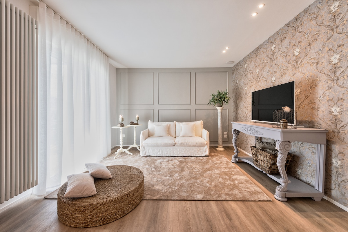 Raffinato appartamento a Treviso di 80 mq, a soli 2,2 km dal centro, a 3 km dall’aeroporto Canova e a 1,7 Km dalla stazione dei treni che collegano direttamente con la città di Venezia (treno) e Cortina d’Ampezzo (pulmann ). Ambienti luminosi con arredi eleganti. Atmosfera calda e curata nei minimi dettagli per un soggiorno indimenticabile tra relax e stile. Ideale per coppie, professionisti e viaggiatori alla scoperta della città.