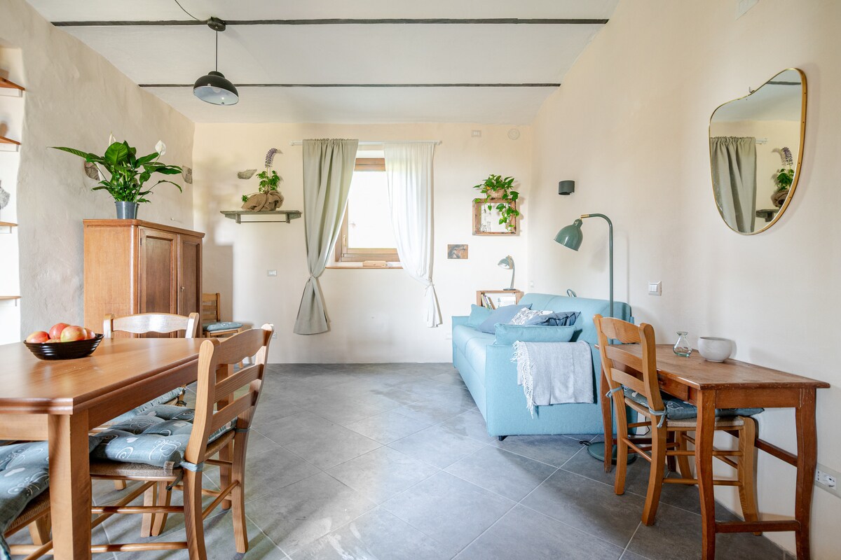 Miniappartamento con camera, bagno, living e angolo cucina, con fantastica vista panoramica, immersa nella campagna ma a pochi minuti dal centro città. Ideale per amanti della natura, famiglie, sportivi. Da tenere in considerazione che, per raggiungere la cascina e godere della vista e della tranquillità della campagna, è necessario affrontare una strada sterrata e a tratti stretta. Nella struttura sono presenti altre due unità abitative per ospiti. CIR 012133-AGR-00006 CIN IT012133B546CQHW98