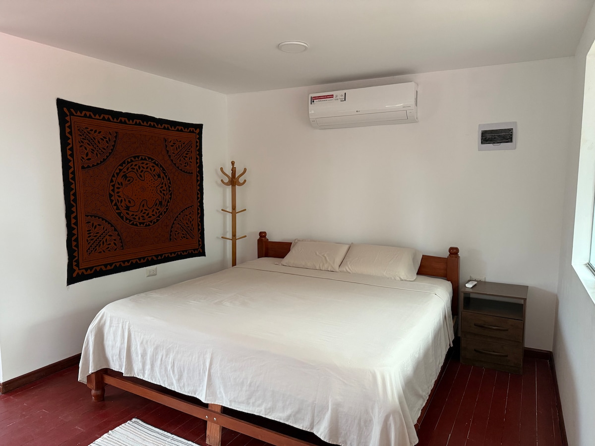 1. Einkarými með beinum aðgangi, á annarri hæð, loftkælingu, hröðu þráðlausu neti og útsýni yfir götuna. Staðsett 12 húsaröðum frá Plaza de Armas. 2 svefnherbergi: Hjónaherbergi með rúmi í queen-stærð, auk 1,5 dýnu á gólfinu og annað hjónaherbergi með 2 rúmum með 1,5 rúmum. 1 fullt baðherbergi, 3 loftviftur, eldhús, stofa með 2 snjallsjónvörpum, einkarúm. Gólfdýna fyrir fimmta gest. 2. SÖMU SVÖLUM með þvottavél, kolagrill, borðstofu, baðherbergi.