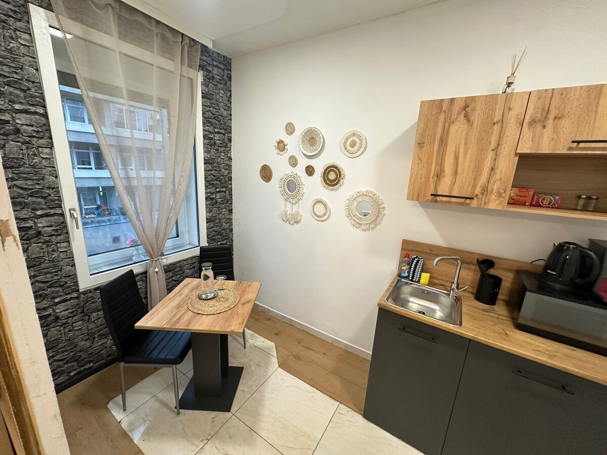 Íbúðin á 2. hæð án lyftu (42 m² með svölum) er staðsett í miðju rólegu og grænu. Í 5 mínútna göngufjarlægð frá sporvagninum sem leiðir þig að miðjunni á 8 mínútum. Ókeypis bílastæði í kringum bygginguna. Örbylgjuofn, te, kaffi og smoothie-vél í boði. Fyrir ungbörn (yngri en 2 ára) er ekki boðið upp á rúm og handklæði! Íbúðin var endurnýjuð að fullu árið 2023. Yndislegt andrúmsloft býður þér að slaka á í gegnum þægindin. Vinsamlegast hafðu samband við mig ef þú hefur einhverjar spurningar.