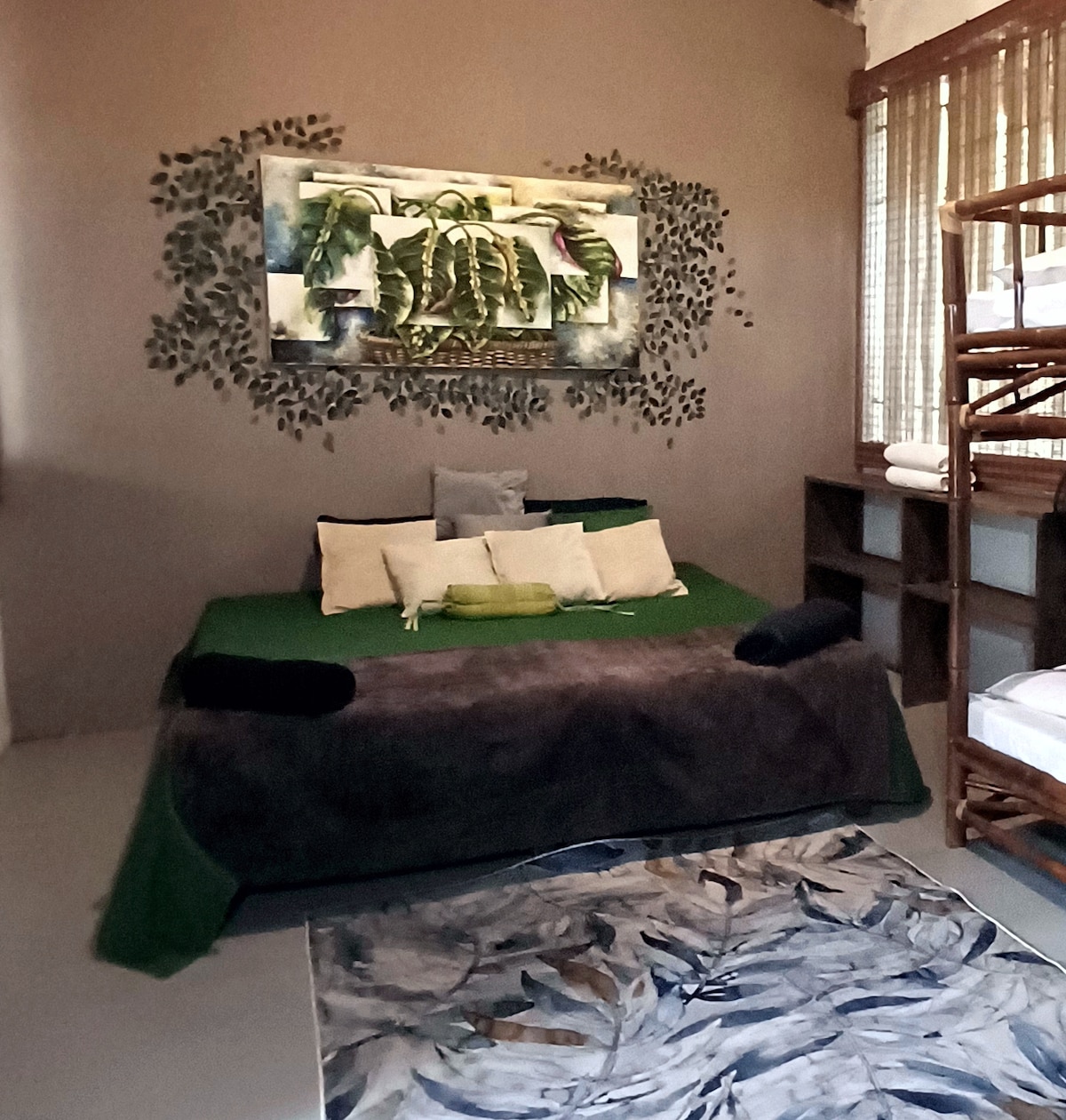 Seis cuartos independientes con sus baños propios, ubicados en una amplia reserva natural, con la comodidad, paz y tranquilidad que ofrece un entorno natural hermoso con la flora única de esta región incluyendo multitud de helechos gigantes en vía de extinción y rodeado de cafetales, cítricos y platanales, además de la ventaja de estar a unos pasos del zócalo. Centro de Desarrollo Sustentable, una interfaz entre las comunidades del territorio y el exterior.
