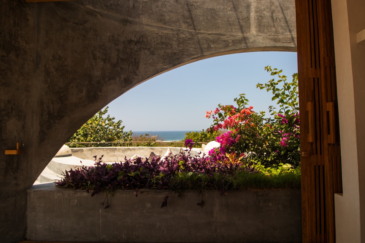 Falleg villa skreytt með innblæstri frá Oaxacan sem er hönnuð fyrir kyrrð og þægindi. Hér er einkasundlaug með endalausu útsýni yfir sjóinn, stór verönd með eldhúsi og einkaleið sem leiðir þig á ströndina á nokkrum mínútum. Allt er hannað til að gera dvöl þína þægilega, afslappandi og einstaka. Fullkomið fyrir pör sem vilja aftengjast og njóta náttúrulegs og ósvikins umhverfis.