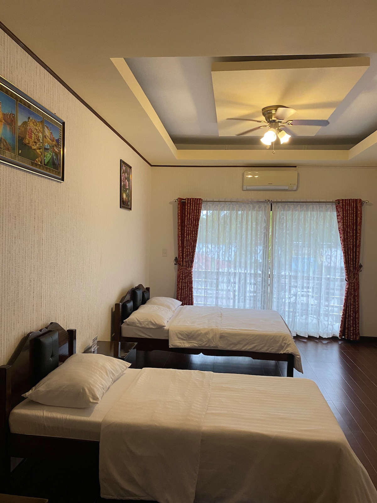 Hér erum við með mögnuð og stór glæný fjölskylduherbergi með mögnuðu útsýni yfir Valladero-flóa, fullbúin húsgögnum með 50/50 blöndu af filippseyskum skreytingum og nútímalegum innréttingum en veitir þér samt filippseyska stemningu og stemningu innandyra. Mjög stórar svalir þar sem þú getur slakað á og notið árlegrar sjávargolunnar og ferska loftsins. Staðsett í innan við 10 mínútna fjarlægð frá Puerto Gallera Loftræsting eða loftvifta eru í boði sem henta þínum fjárhag. AirCon Unit - P6.000 Loftviftueining - P5.000