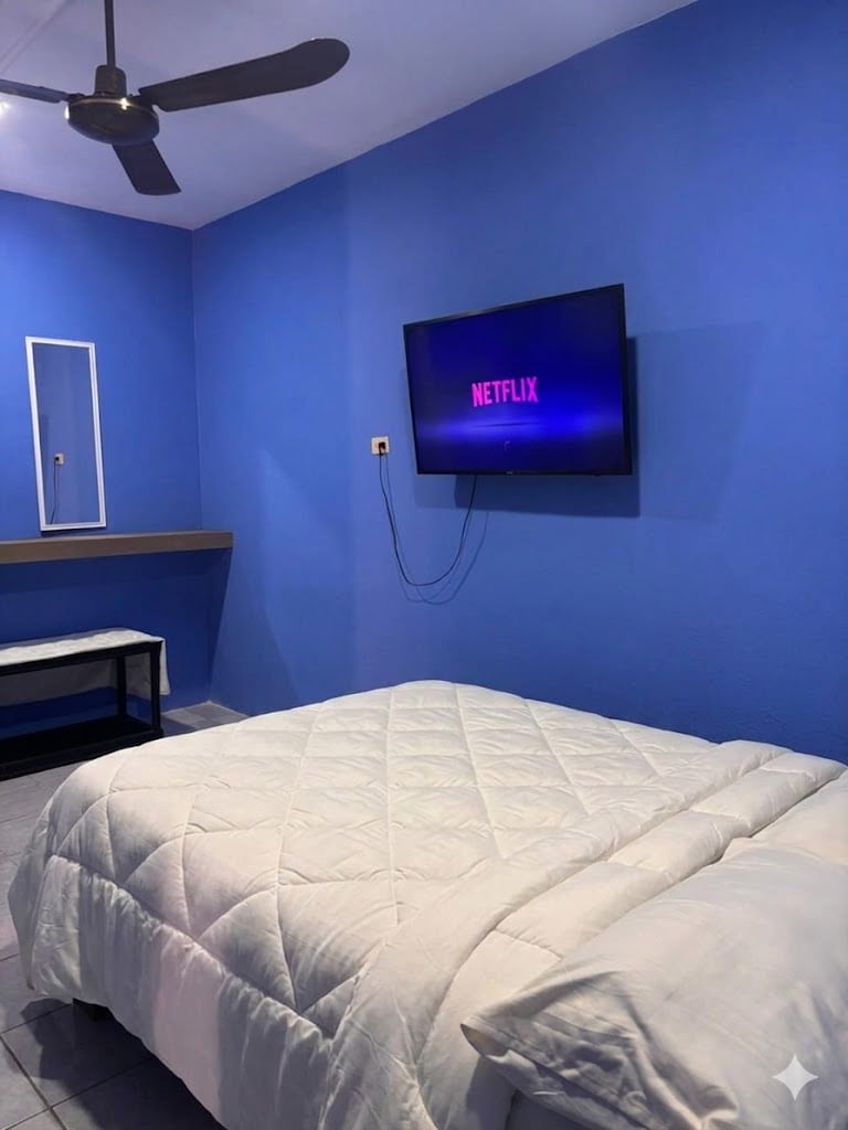 Einkastúdíó fyrir þá sem kynnast ánni og leita sér að góðum hvíldarstað. Tilvalið fyrir pör, þriggja manna hópa eða fjögurra manna fjölskyldu. Þú getur gengið að nálægum stöðum eins og stofnunum, ofurmarkaði, verslunum, veitingastöðum, börum, kaffihúsum og ströndum. - Aðgangur að strönd í Av. Colosio, 550 m (8 mín.) - Aðgangur að Playa á 48. stræti, 800 m (10 mín.) Matvöruverslun OXXO, 400 m (5 mín.) - Quinta Avenida, 350 m (5 mín.) - Super Mercado Chedraui Selecto, 800 m (12 mín.)
