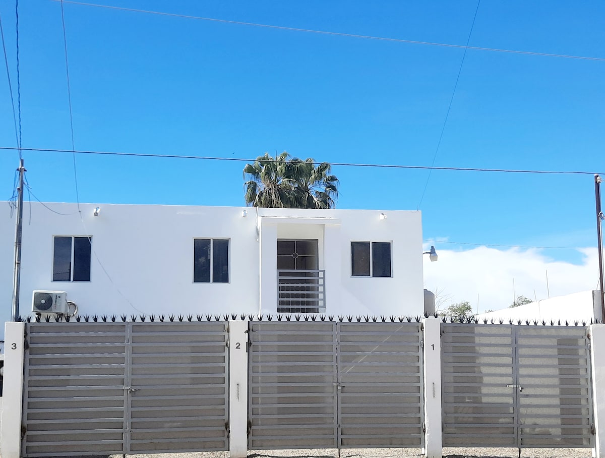 Njóttu einfaldleika þessa kyrrláta og miðlæga gistirýmis. Næg bílastæði eru fyrir ökutækið þitt. Við erum hálfa húsaröð frá aðalstræti Puerto Peñasco og matvöruverslunum eins og Sams club, Aurrera, veitingastaðabar og Oxxo einni húsaröð frá Little Caesar pizzeria. 5 mín frá flestum heimsóttum ströndum. Það er hjónarúm í herberginu og svefnsófi í stofunni. Við erum með aðferðir til að hreinsa eignina til að gera dvöl þína örugga og þægilega.