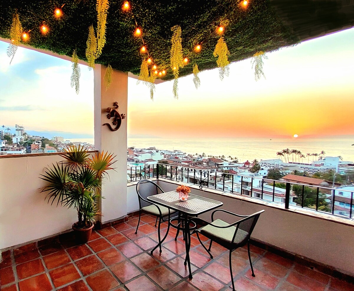 Uppfært sundlaugarsvæði! Rúmgóð og nútímaleg 1240 fermetra, 2 BR, 2 BA-eining, með svefnsófa, sem gerir allt að fjórum gestum kleift að gista þægilega í þessari miðlægu vin. (4.-7. nóv lokað á þaki) Njóttu glæsilegrar lúxusíbúðar í rómantíska svæðinu í gamla bænum, PV, með þaki sem þú vilt ekki yfirgefa! Smekklega hannað með stuðningi innanhússhönnuðar á staðnum. Þægindi, hlýja, afslöppun og lúxus eru allt lykilatriði í vandlegu úrvali húsgagna.
