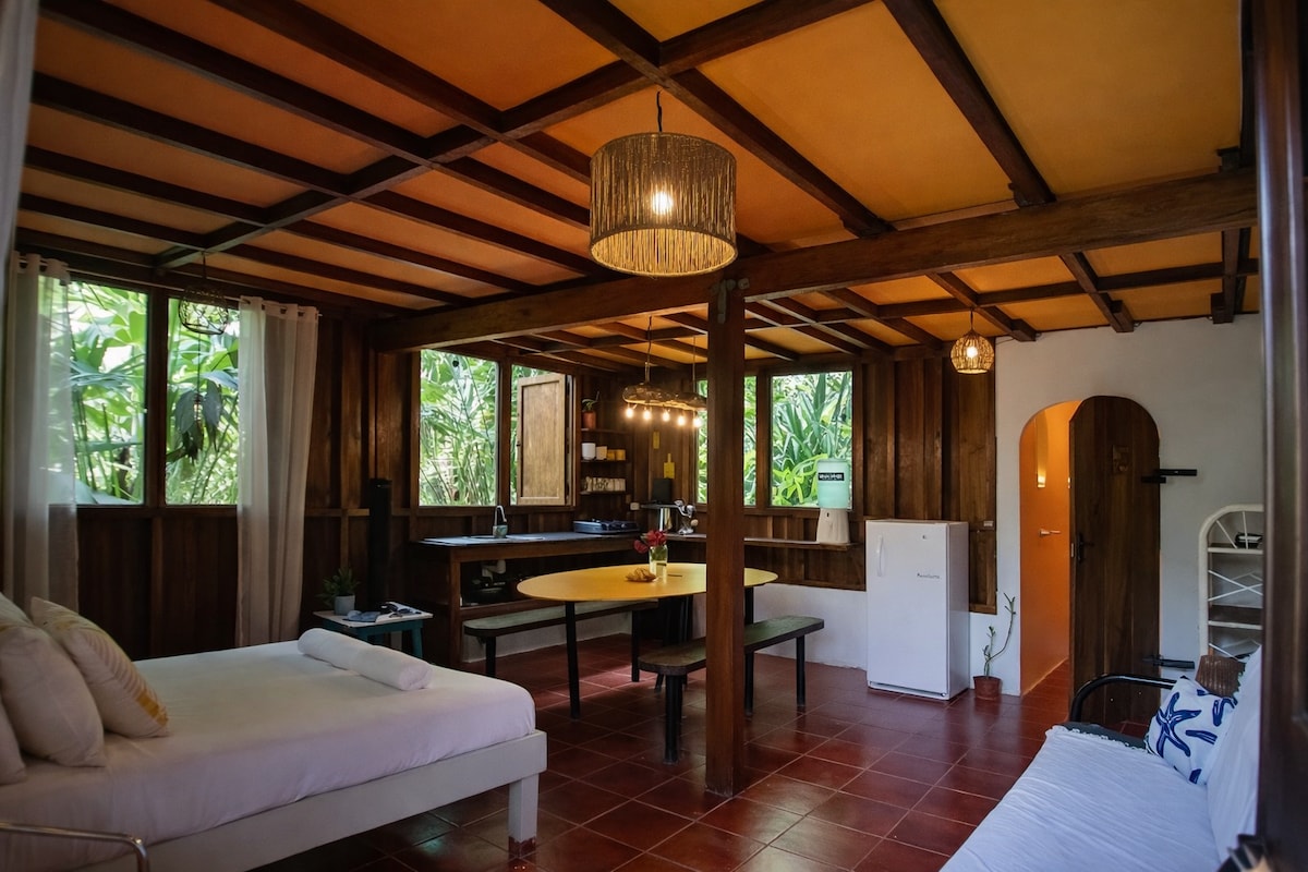 Stökktu í einkaafdrep í frumskóginum þar sem náttúran nýtur þæginda. Staðsett á 1 hektara eign, aðeins 2 km frá bestu strönd svæðisins. Njóttu daglegra heimsókna frá öpum og kólibrífuglum, dýfðu þér í laugina eða slappaðu af á veröndinni til kyrrlátra hljóða hitabeltisfugla.