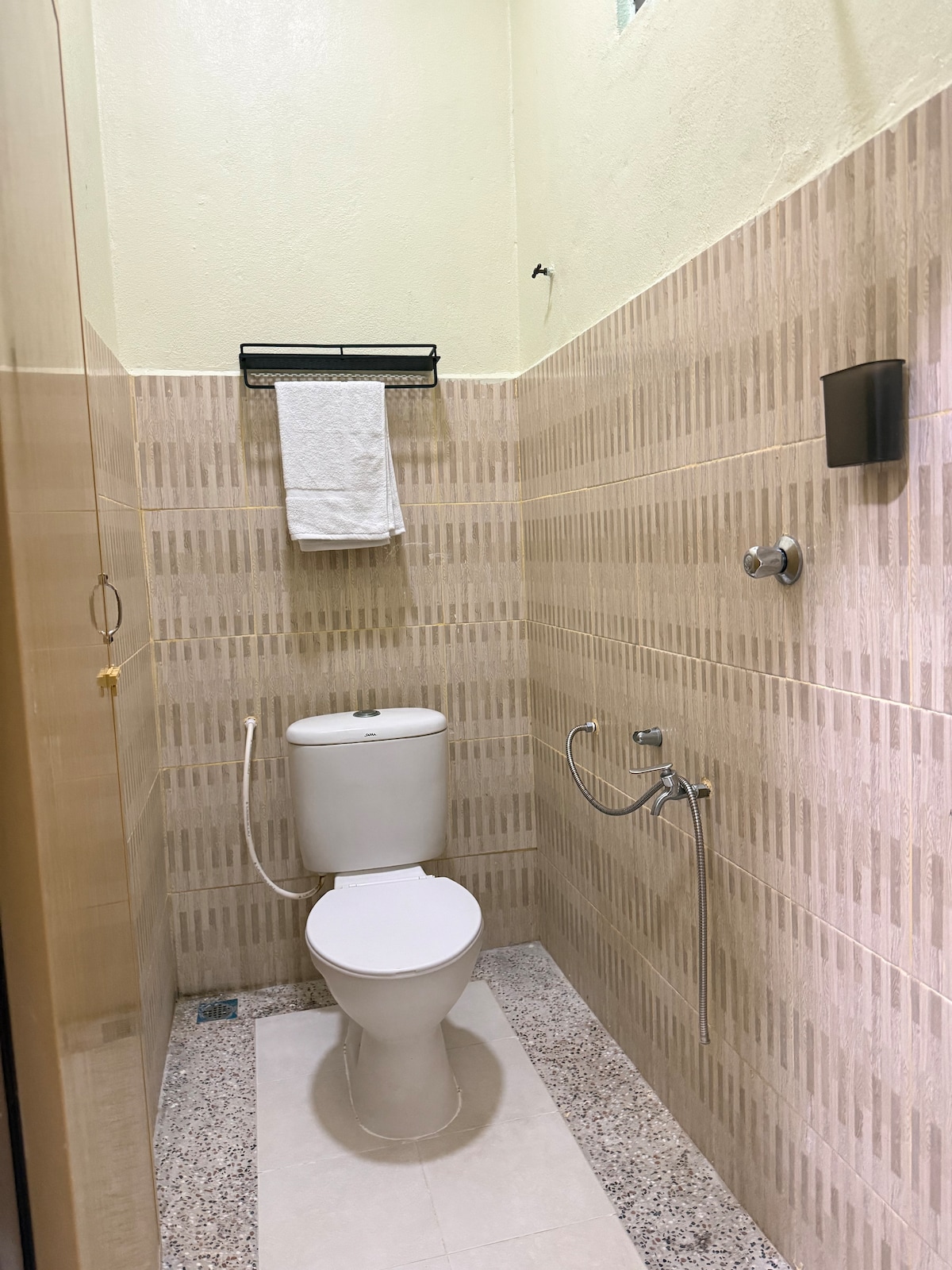 Based on the resort’s published info: Bed setup / Capacity: Usually includes 1 queen bed + 1 single bed. So it can accommodate 3 persons comfortably. Sea view: The room has a view of the sea — likely a balcony or windows facing the ocean so you can see the water. Air conditioning & Hot Shower: Room is air-conditioned, and the bathroom has a shower + WC. Hot water is available. Other in-room facilities: Fridge, attached bathroom, likely basic amenities like towels, western style toilet.