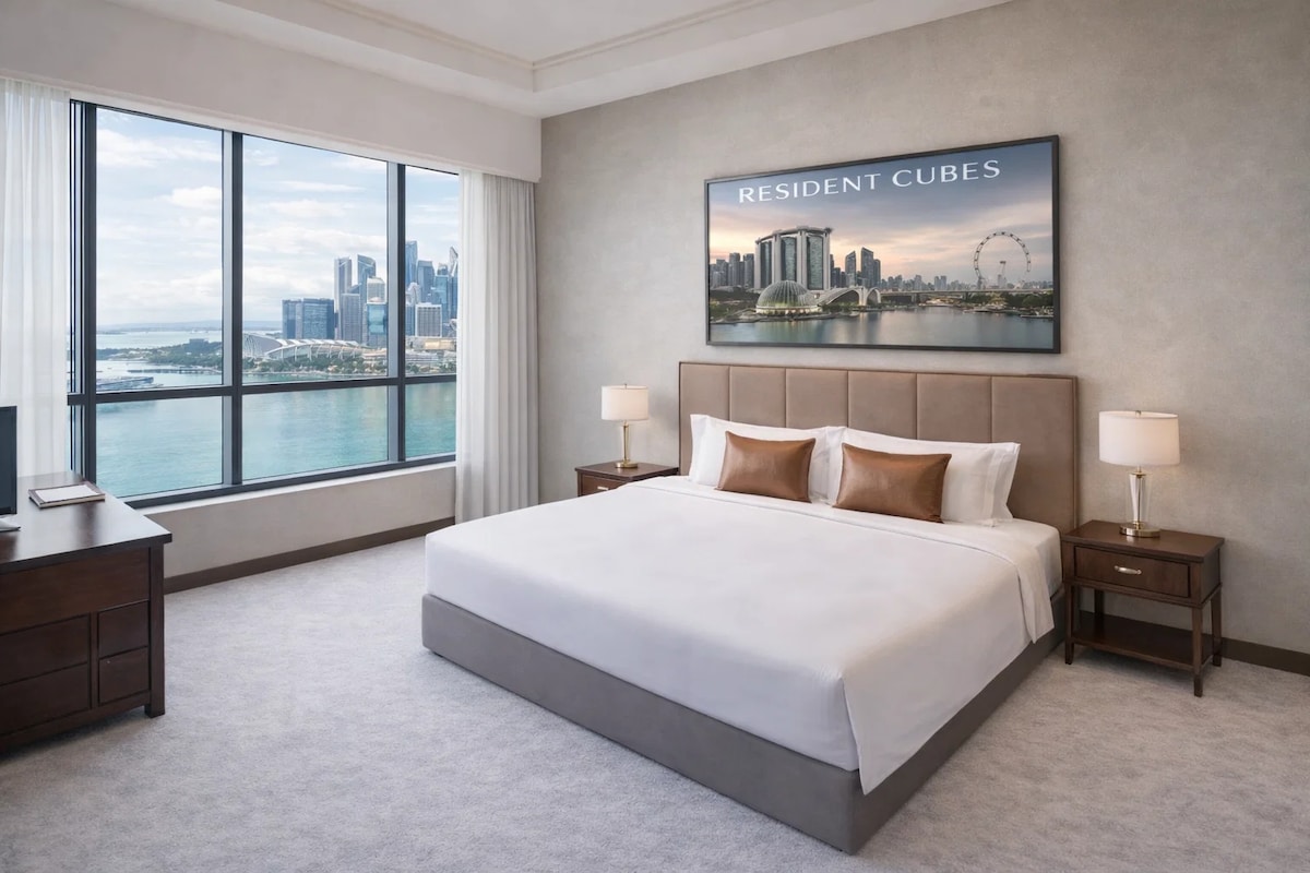 NÝLEGA UPPGERT!! 387fet fyrirferðarlítil en fullbúin húsgögnum með snjallsjónvarpi, litlum ísskáp, katli, örbylgjuofni, öryggishólfi í herbergi, ÞRÁÐLAUSU neti, líkamsræktarstöð, sundlaug og vinalegu fólki! Við erum með fullgild leyfi á hóteli með fullu leyfi í Singapúr!