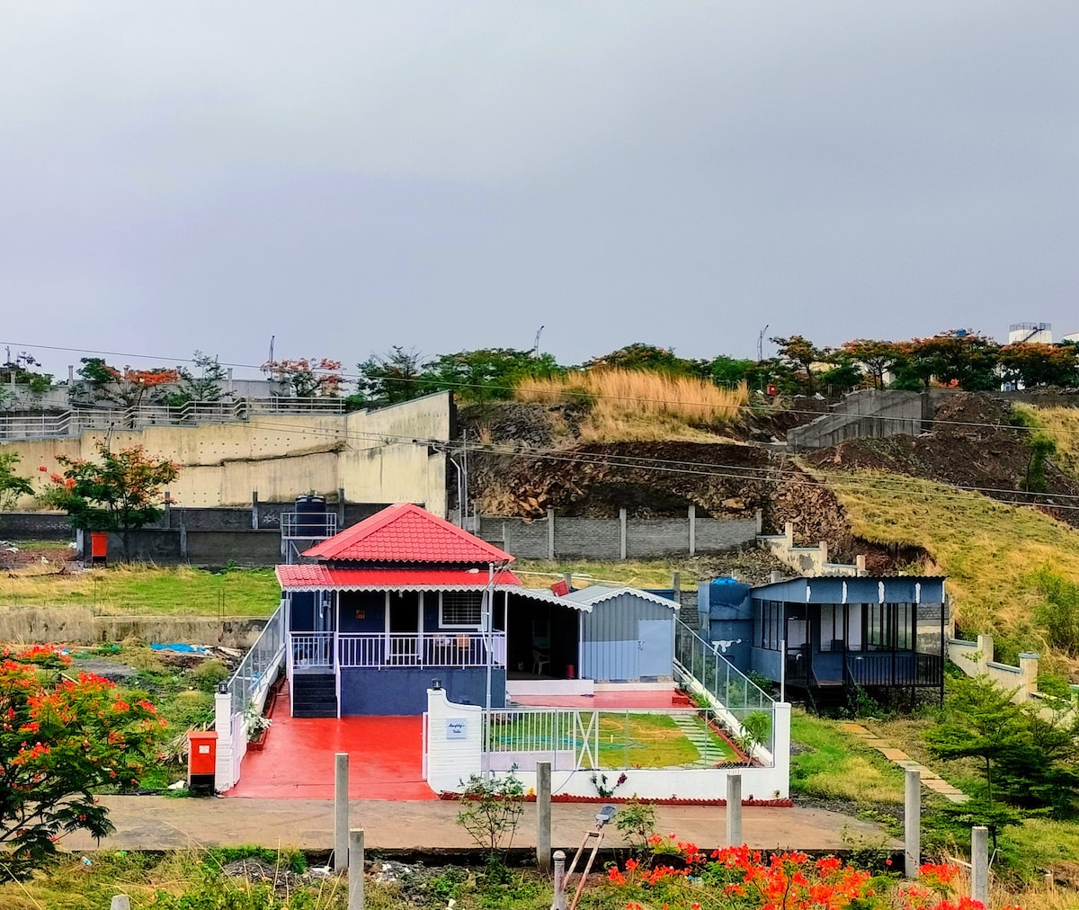 Bókaðu þér gistingu til að vakna til vitundar um magnað útsýni yfir borgina frá þessu glæsilega glerhúsi. Forðastu ys og þys hversdagsins í heillandi 2BHK einbýlinu okkar á 1. hæð(klifurstigar). 10 mínútur á flugvöllinn, 12 mínútur á neðanjarðarlestarstöðina og 12 mínútur í Novotel & Ritz-Carlton. Matarsending í 10 mín. með þjónustu á borð við Blinkit & Zomato frá þekktum kaffihúsum í Pune. Hentar öllum, þar á meðal pörum, piparsveinum og fjölskyldum. Ókeypis þráðlaust net, næg bílastæði og afslöppun við framveröndina.