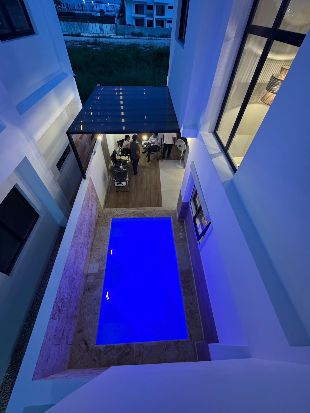 Gaman að fá þig í lúxusafdrepið þitt í Punta Cana! Þessi villa fyrir 6 manns, staðsett í einkaíbúð með eftirliti allan sólarhringinn, er tilvalin fyrir ógleymanlega dvöl. Njóttu nuddpotts fyrir 8 manns, pool-borð og fullbúið eldhús. Aðeins 12 mín frá Punta Cana flugvelli, 10 mín frá verslunarmiðstöðvum, Coco Bongo, Blue Mall og miðbæ Punta Cana og 15-20 mín frá bestu ströndunum. Þráðlaust net, loftræsting og einkabílastæði fylgja.