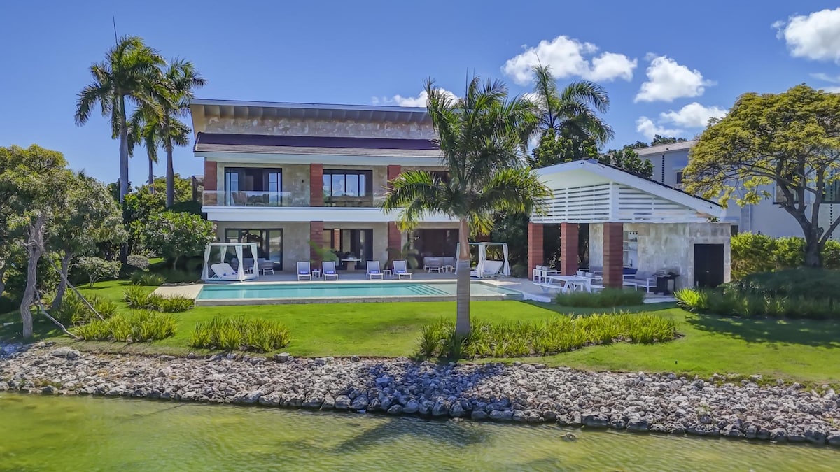 Sleek minimalism meets wide opens skies at this seaside resort villa near the fairways of Punta Cana's gated community. Two stories are built wider than they are tall, opening the villa to the poolside terrace. Float in the pool, read in the gazebo, and breathe in the steam of the hot tub as stars pop into view. Beginner snorkelers will love the calm waters at the beach just a 5-minute walk away. Copyright © Luxury Retreats. All rights reserved.