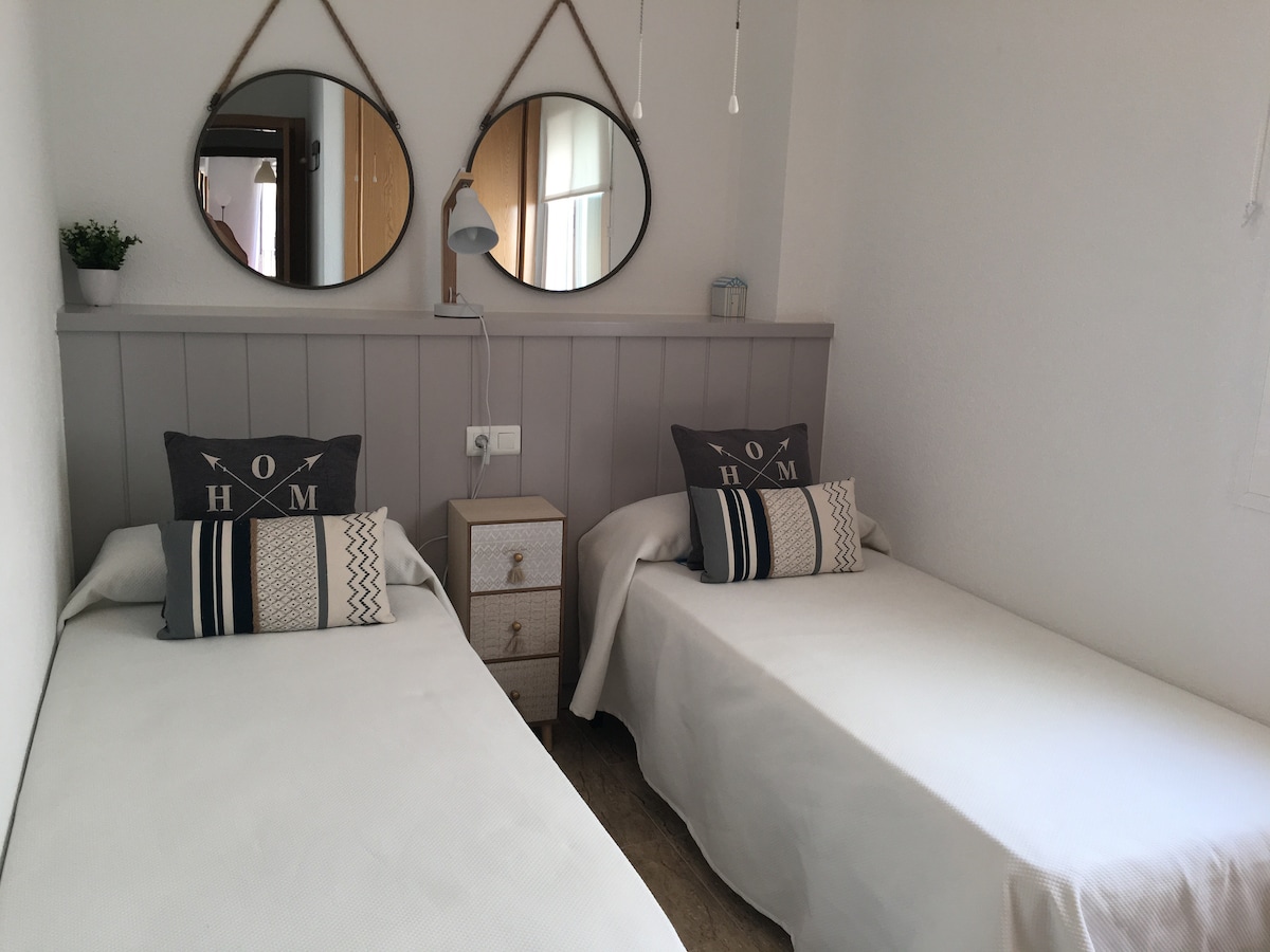 Góð og notaleg gisting, rólegt svæði án hávaða, 2 mínútur frá miðbænum og 5 mínútur frá ströndinni. Cabida fyrir 8 manns. Með 3 LOFTKÆLDUM herbergjum, tvö þeirra eru tvöföld og eitt með þremur 90 rúmum. Stofa með svefnsófa, lítilli verönd og eldhúsi með verönd. Tvö fullbúin baðherbergi með sturtu. Stórt BÍLSKÚRSRÝMI Í byggingunni með sjálfvirkri hurð og beinu aðgengi að húsinu með LYFTU. Frá gáttinni eru 10 þrep að húsinu og 3 þrep frá bílskúrnum.