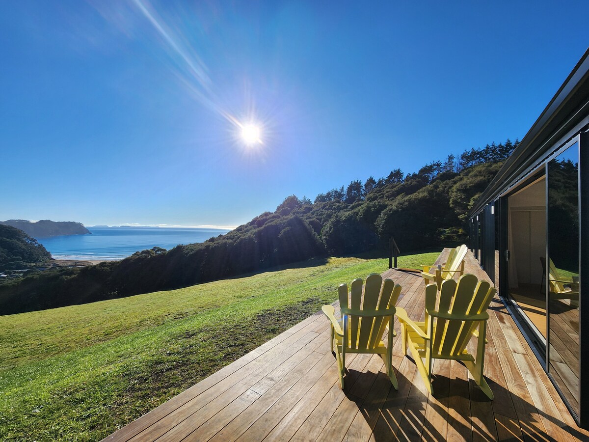 The Lookout er sjálfstæður gestakofi staðsettur á upphækkaðri 10 hektara einkaeign í aðeins 5 mínútna akstursfjarlægð frá Cooks Beach. Það er staðsett við hliðina á endurnýjandi runna og þaðan er útsýni yfir Mercury Bay-víngerðina, Purangi Estuary og víðar að Mercury Bay sjálfum. The Lookout er algjörlega sjálfstætt og er með hlýjum náttúrulegum timbri og þægilegu queen-size rúmi. Hér er einnig einkaverönd sem hentar fullkomlega fyrir morgunkaffi, grill, stjörnuskoðun og fuglaskoðun.