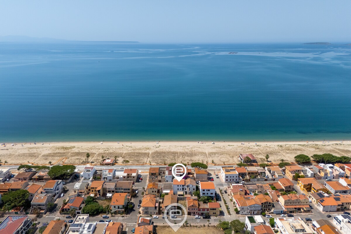 Íbúð með verönd með útsýni yfir sjóinn, nokkrum metrum frá ströndinni, með útsýni til allra átta yfir flóann Putzu Idu, Capo Mannu og á eyjunni Mal di Ventre.