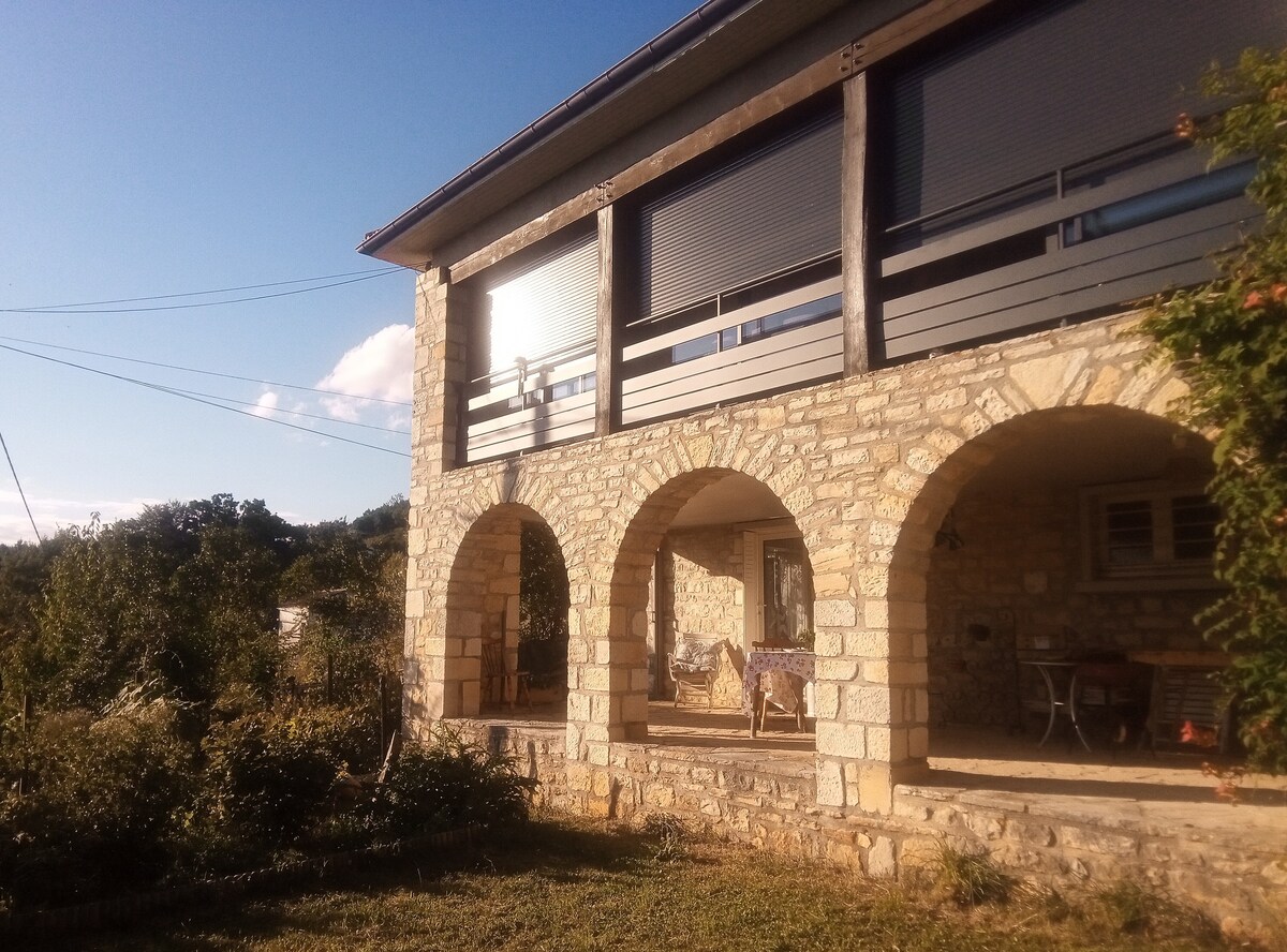 Verið velkomin í Calvayrac, græna hæð með útsýni yfir Lot-dalinn! Célia og Vincent taka á móti þér á allt heimilið nýuppgert með sætum innréttingum. Umkringt grænum svæðum er að finna stórt einkarými utandyra og skóga í nágrenninu. Gistiaðstaðan er mjög björt með sérinngangi og svæðið er um 70 fermetrar. Það er á garðhæð hússins okkar, afskekkt án nágranna, þar sem við búum með tveimur ungum börnum okkar.