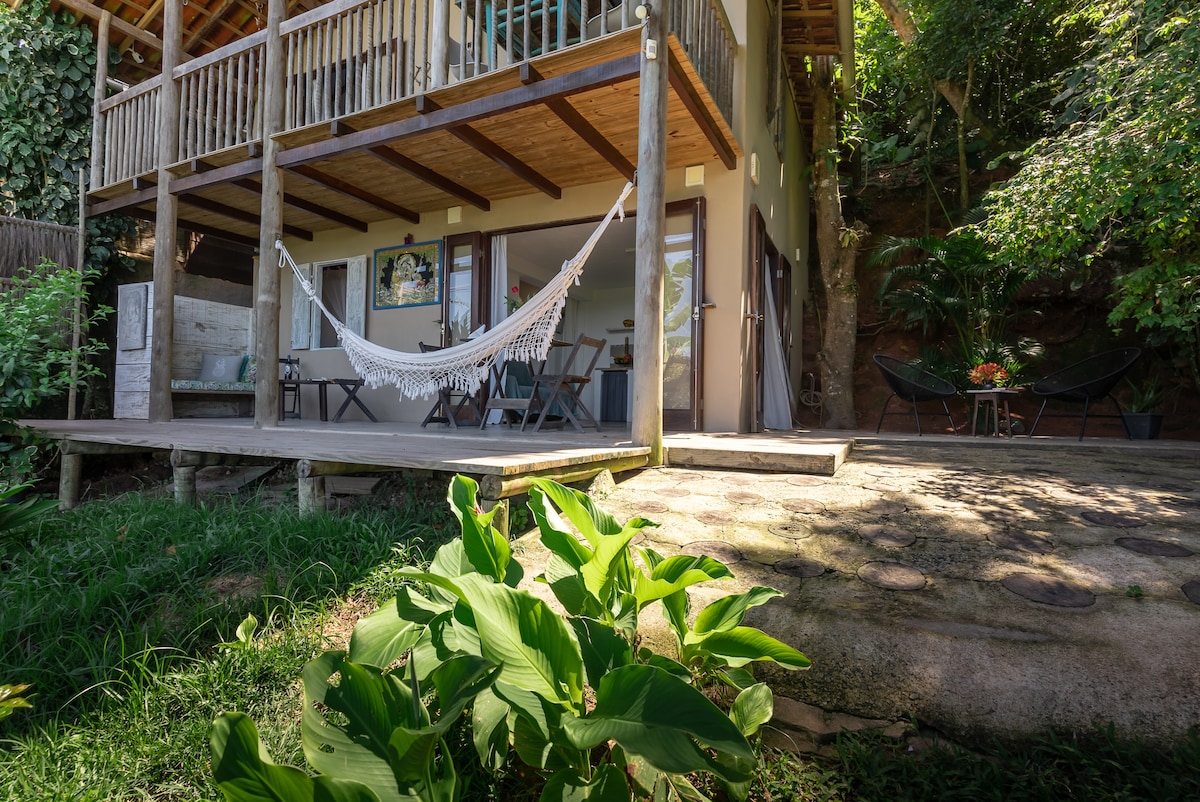 Verið velkomin í Vila Dengo Trancoso! Eignin okkar var vandlega hönnuð til að vera hagnýt og hlýleg. Við erum í aðeins 900 metra fjarlægð frá Quadrado og 1 km frá næstu ströndum, Praia dos Nativos og Praia dos Coqueiros. Í risinu er útbúið eldhús, vel loftræst svefnherbergi með loftkælingu, hjónarúmi og borðstofuborði. Þar að auki eru tvær svalir: önnur með hengirúmi og hin með tveimur stólum og borði sem hentar fullkomlega til afslöppunar. @viladengotrancoso