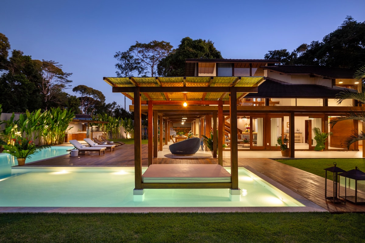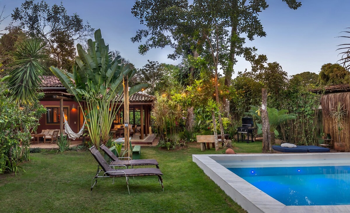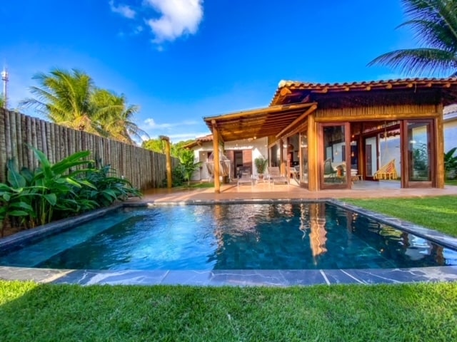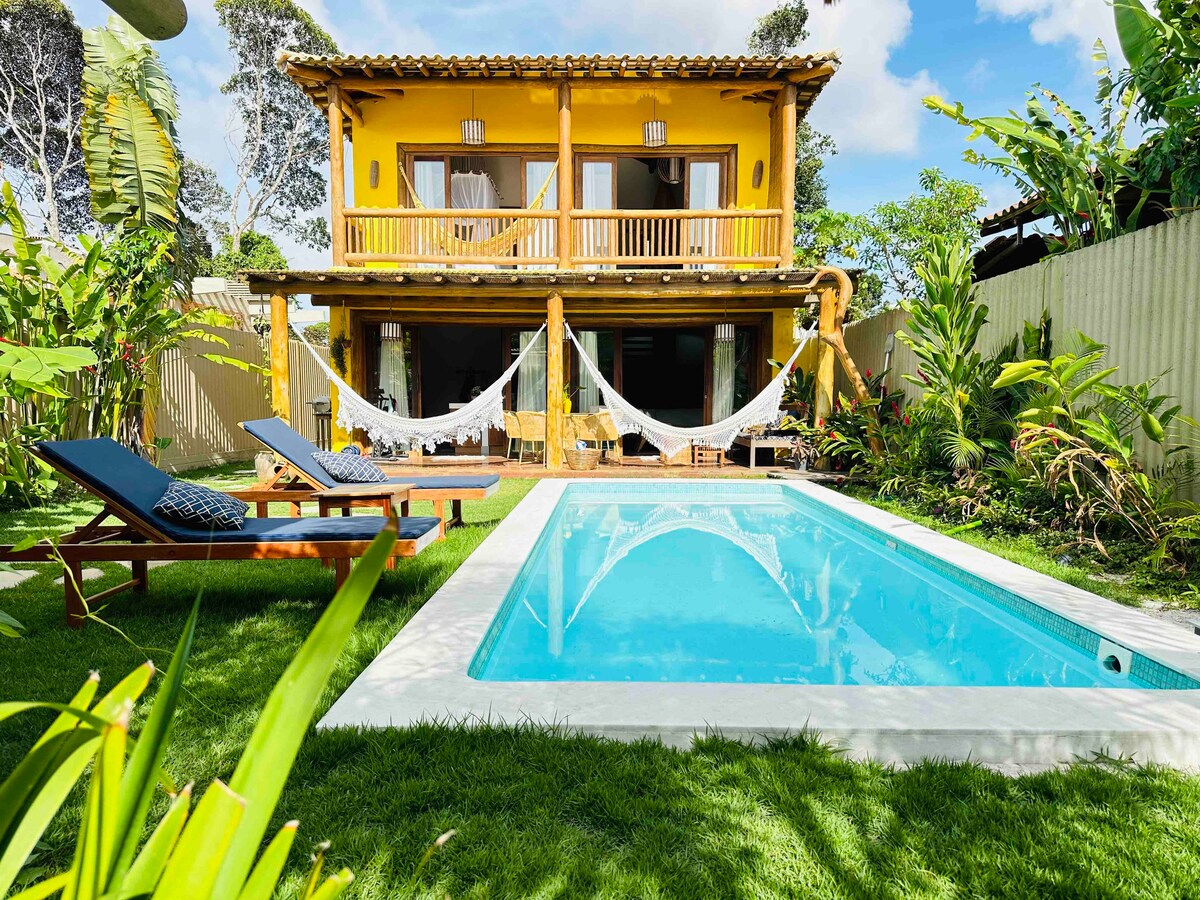 Vila Acayu er orlofsheimili sem sökkt er í náttúruna. Innblásin af sveitaleika og fegurð Trancoso og Grikklands. Með paradísarblárri laug sem er umkringd kasjúhnetutrjám og plöntum. Hér eru nokkrir krókar til að slaka á í sveitalegri og notalegri innréttingu. Hér er stórt sælkerasvæði með grilli, eldavél, svölum og stofu með snjallsjónvarpi (engar lokaðar rásir). Allar svíturnar eru með loftkælingu, tjaldhimni og frigo. Staðsett í afgirtu samfélagi við Monkey Road, 1,5 km frá hinu fræga Quadrado.